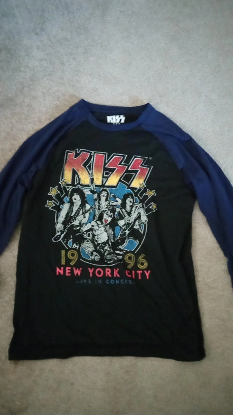 Selling two graphic tees! One is a Pink Floyd sleeveless tee and the other is a KISS long-sleeved baseball tee. Both are in good condition and ready for a new home