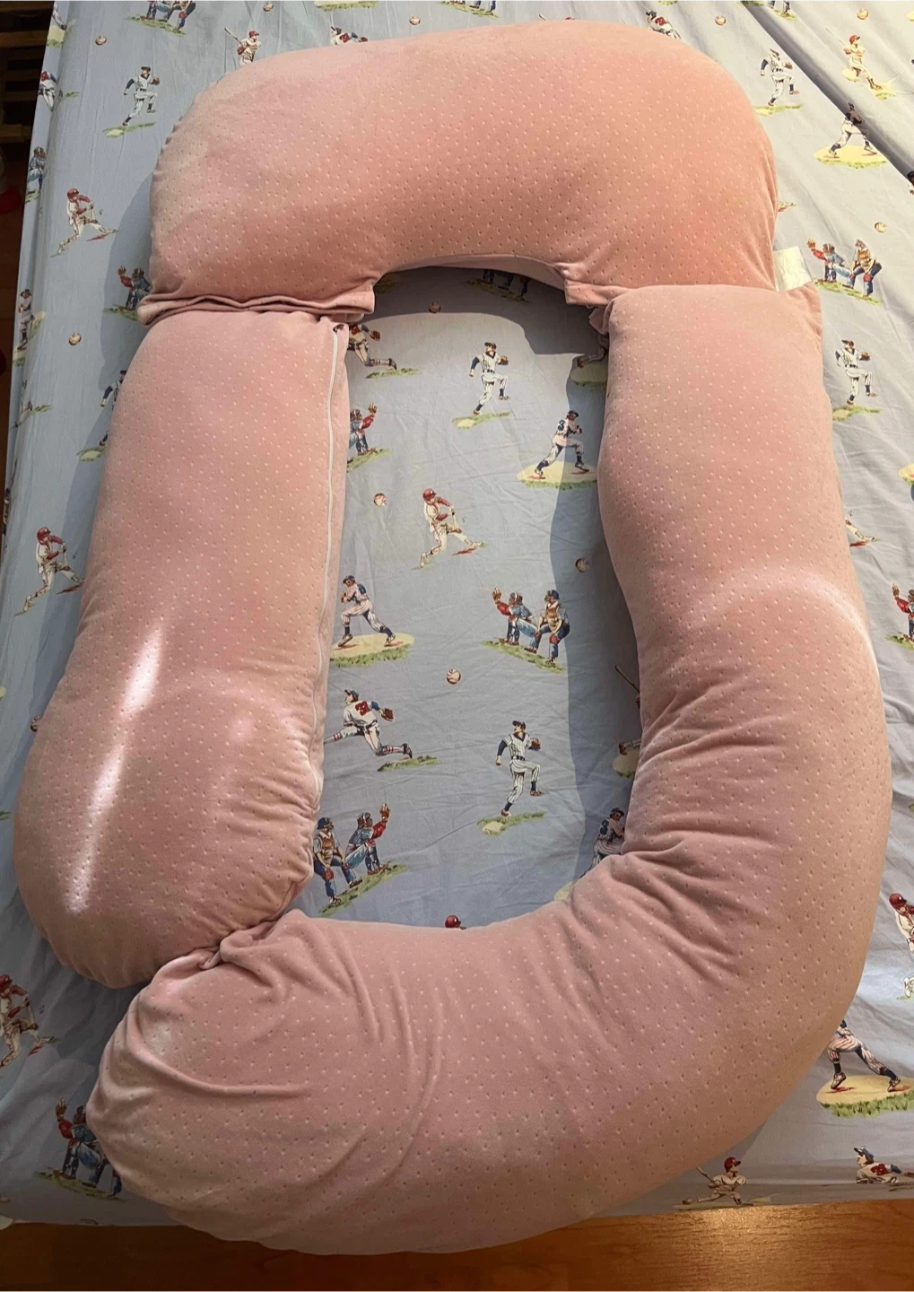 0This is a full body pregnancy pillow in pink. It's in great condition and ready to provide comfort during pregnancy! Detachable