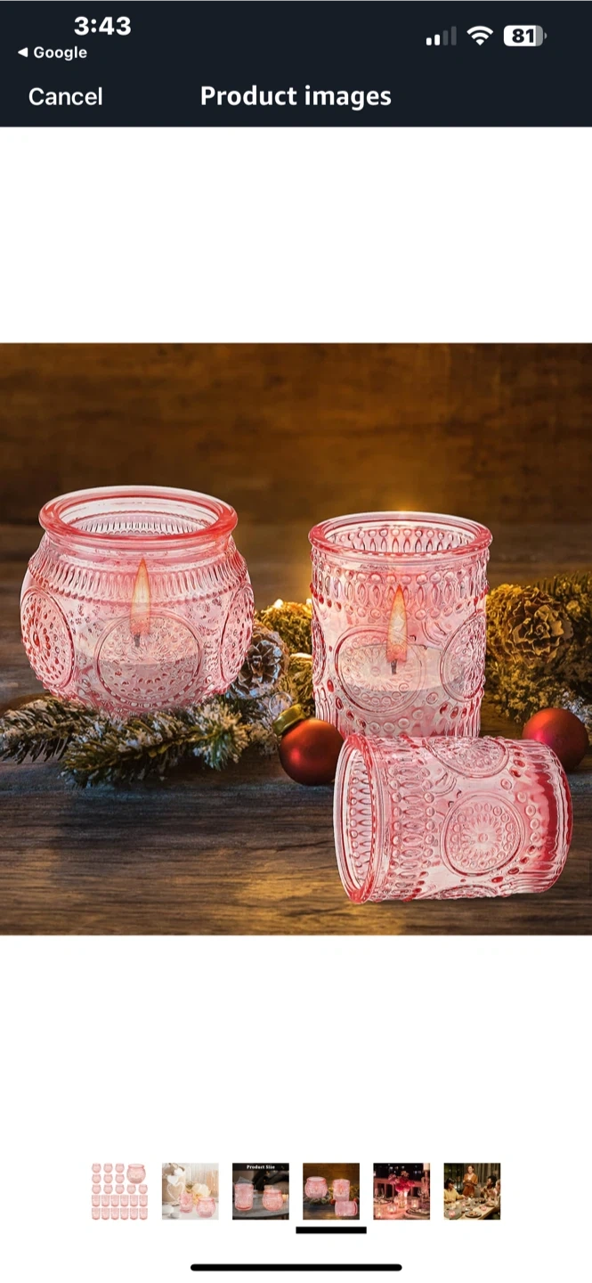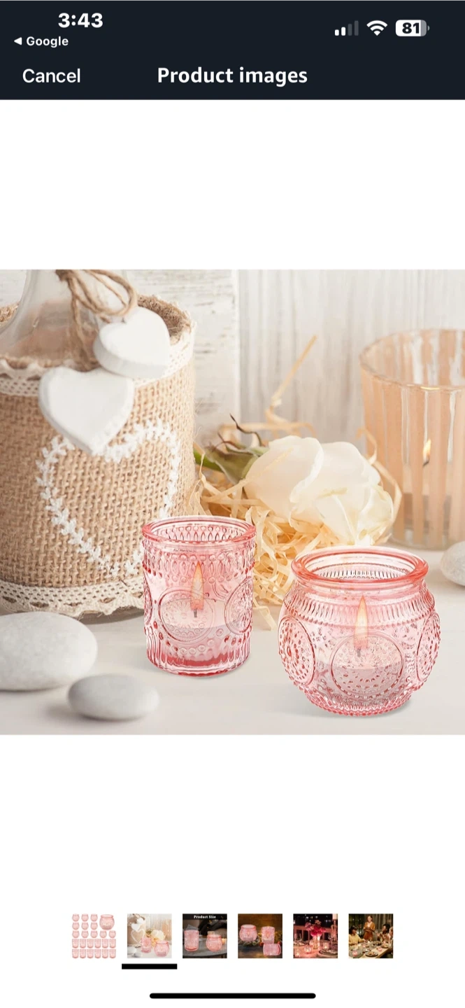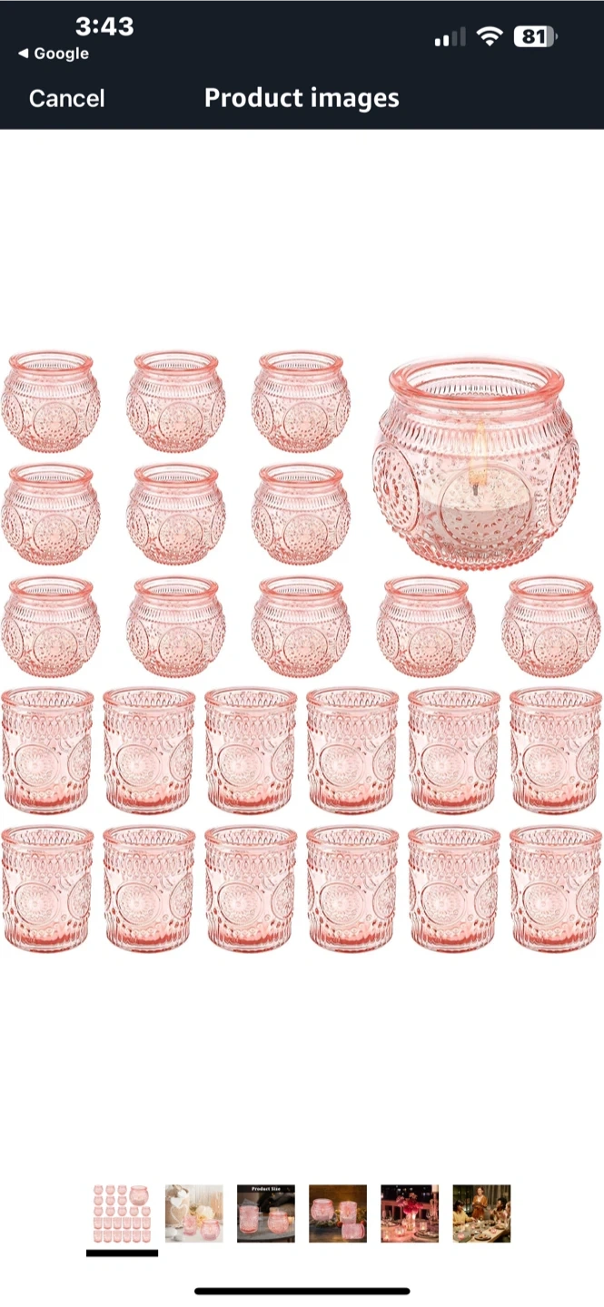 Pink Glass Candle Holders (Set of 24)