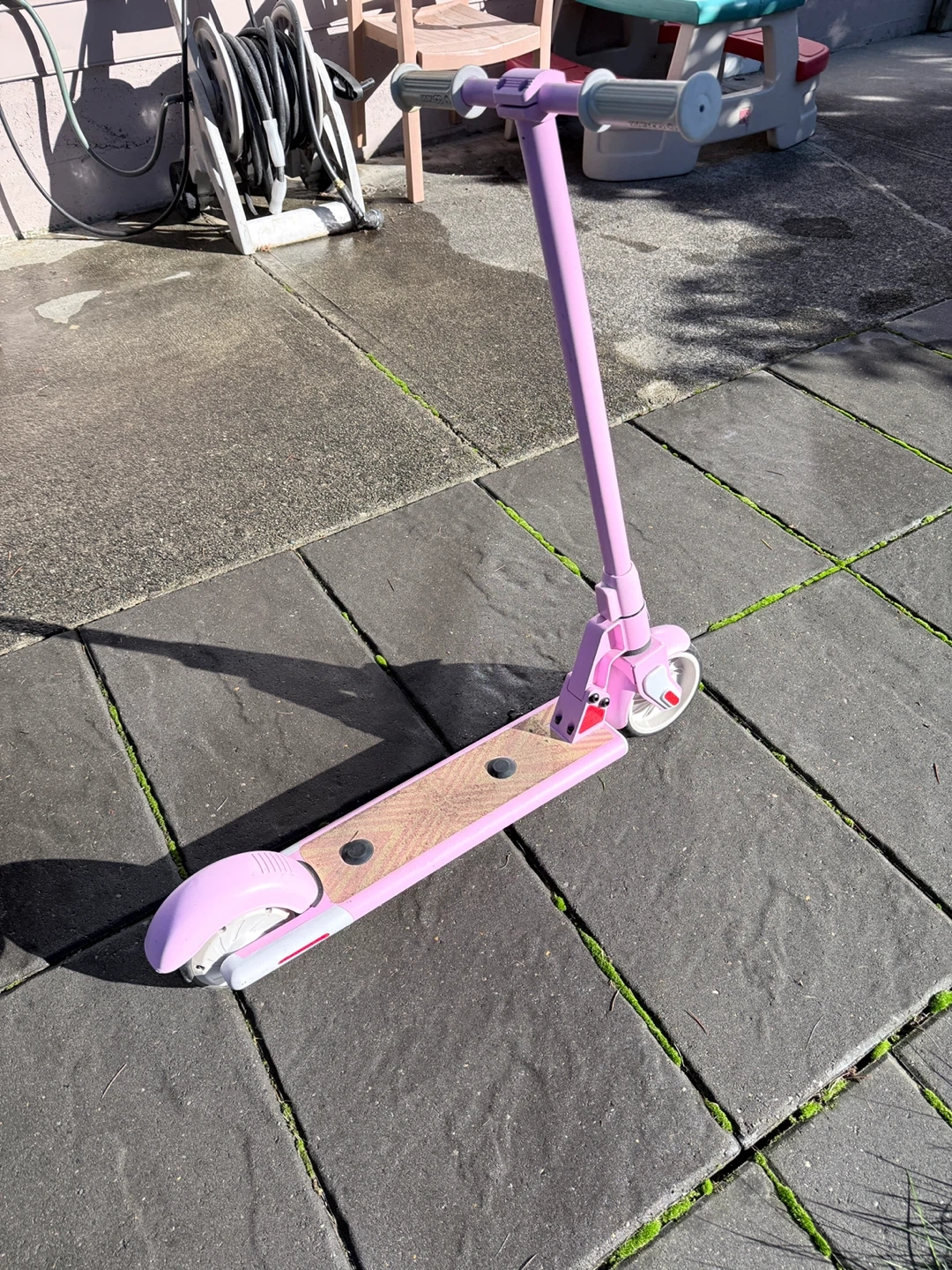 Selling a cute pink electric scooter for kids! It's in great shape and ready for some fun rides around the neighbourhood. Perfect for learning balance and coordination