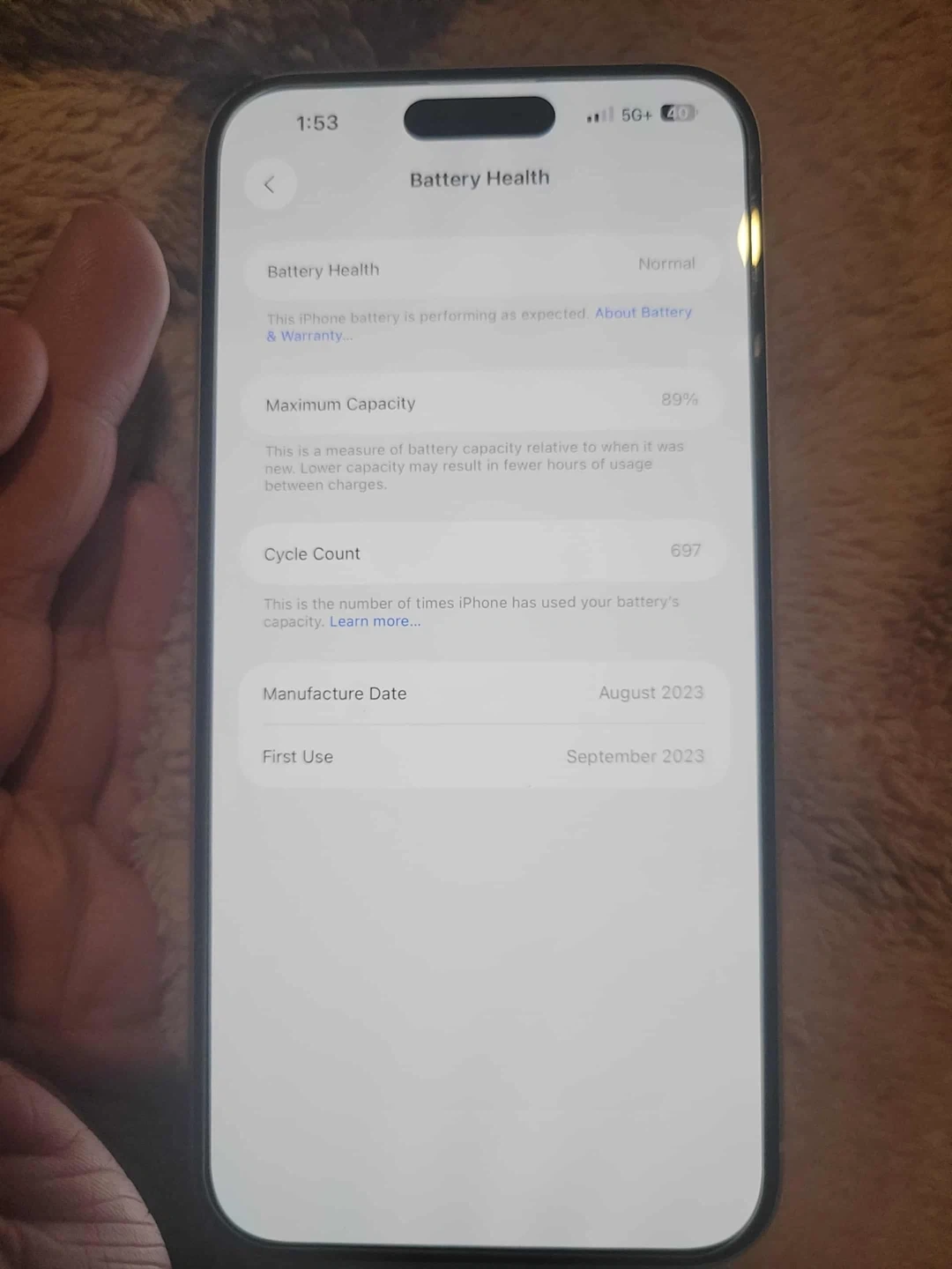 Selling my pink iPhone 14. The battery health is at 89% and the manufacture date was August 2023. Cycle count is 697. Feel free to message me with any questions!