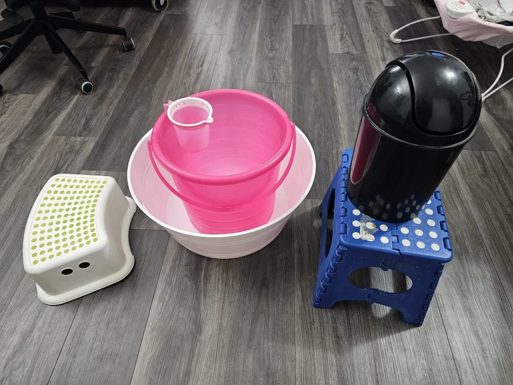 Show allPink Joyo Bucket with Dipper, stool and dustbin