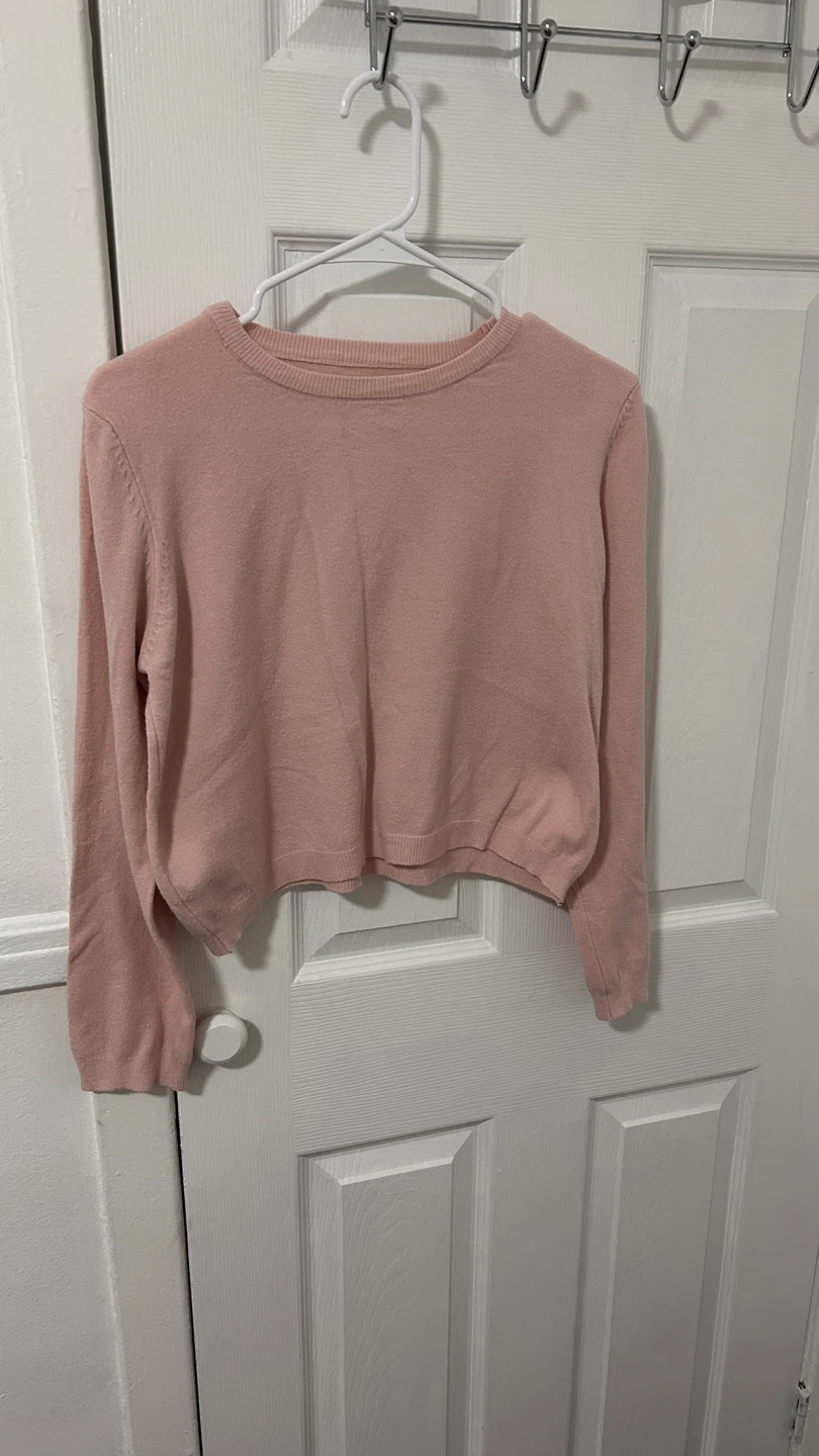 A cute pink long-sleeve sweater that's perfect for layering or wearing on its own. It's in great condition and ready for a new home!