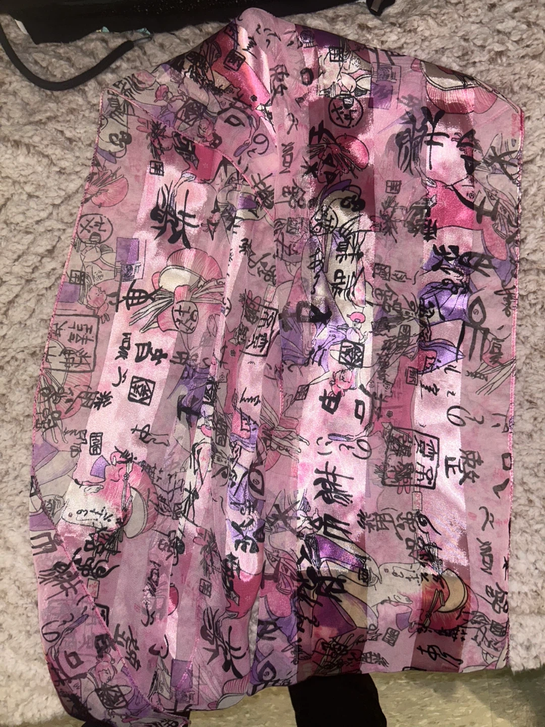 98Here's a pretty pink scarf with a unique pattern! It's lightweight and would be a great addition to any outfit