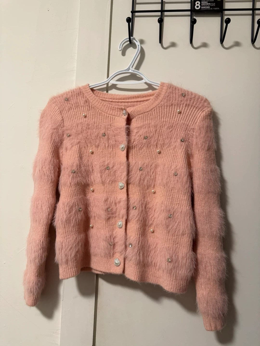 Selling a cute pink cardigan with pearl embellishments! It's in great condition and would be a lovely addition to any wardrobe