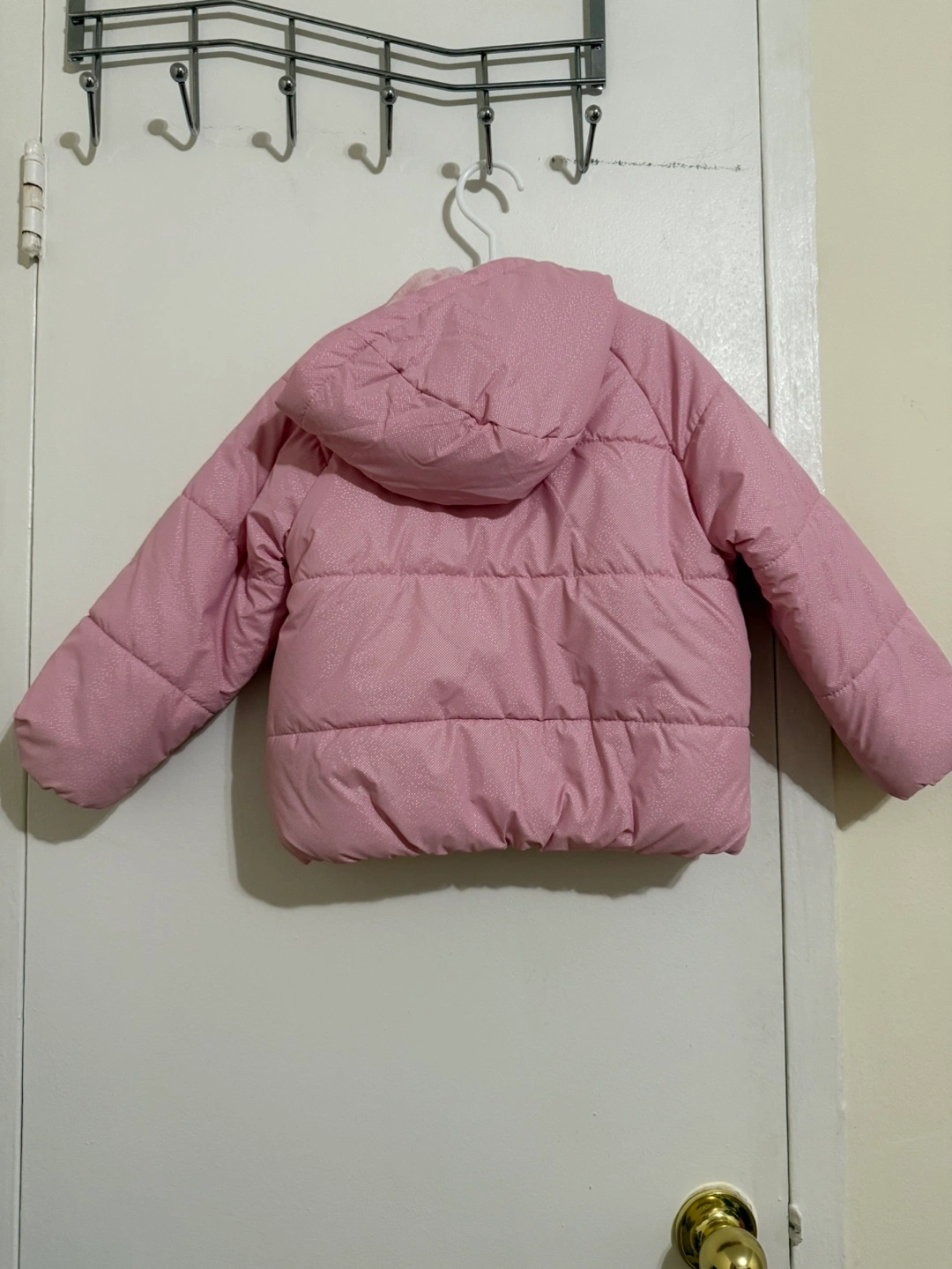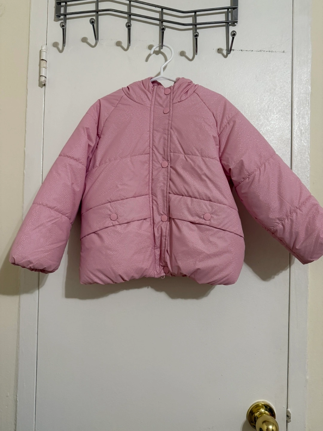 70Here's a cozy pink puffer jacket! It's in great condition and ready to keep you warm. The jacket features a hood for extra protection from the elements