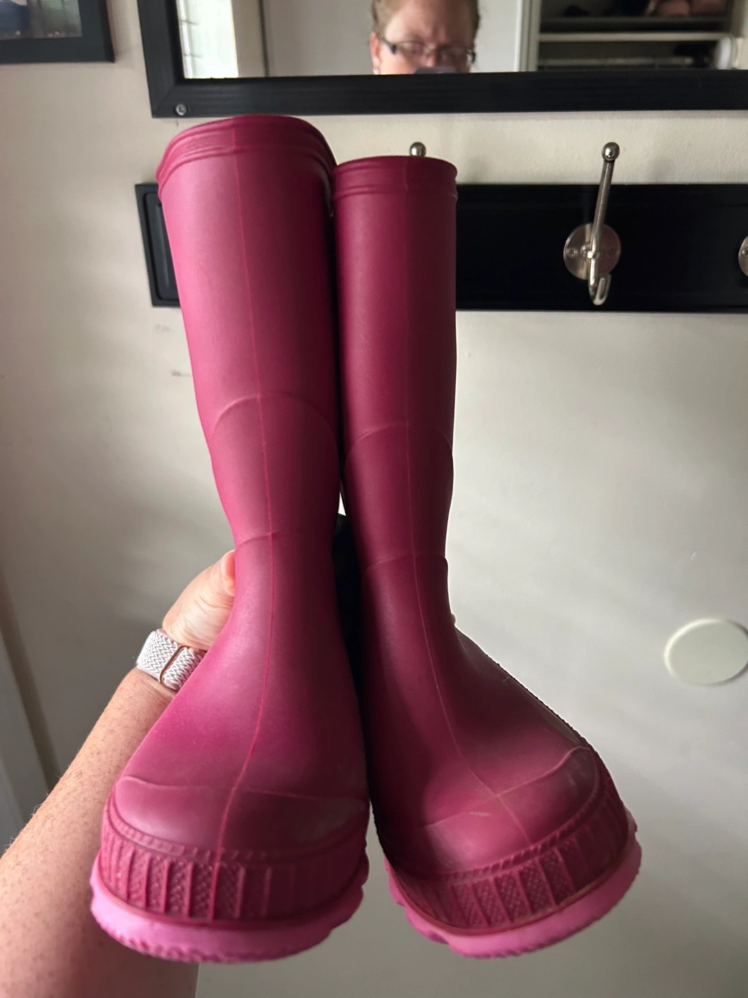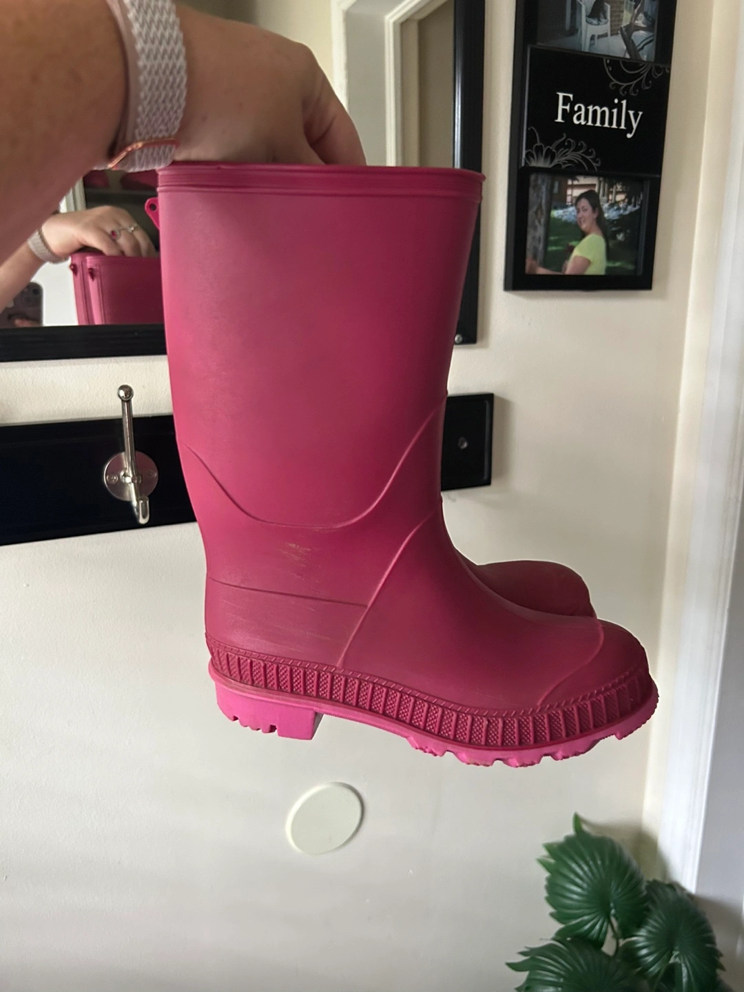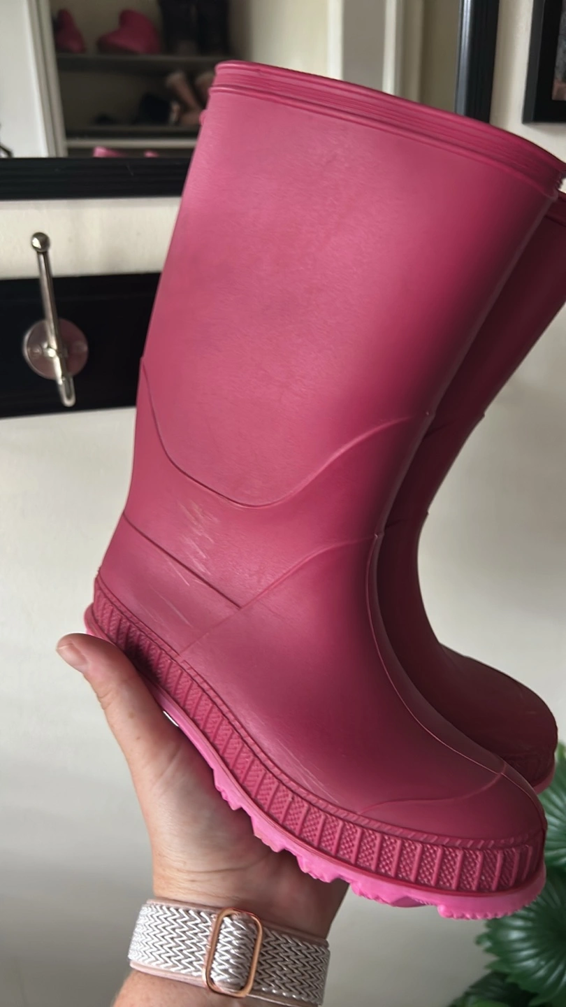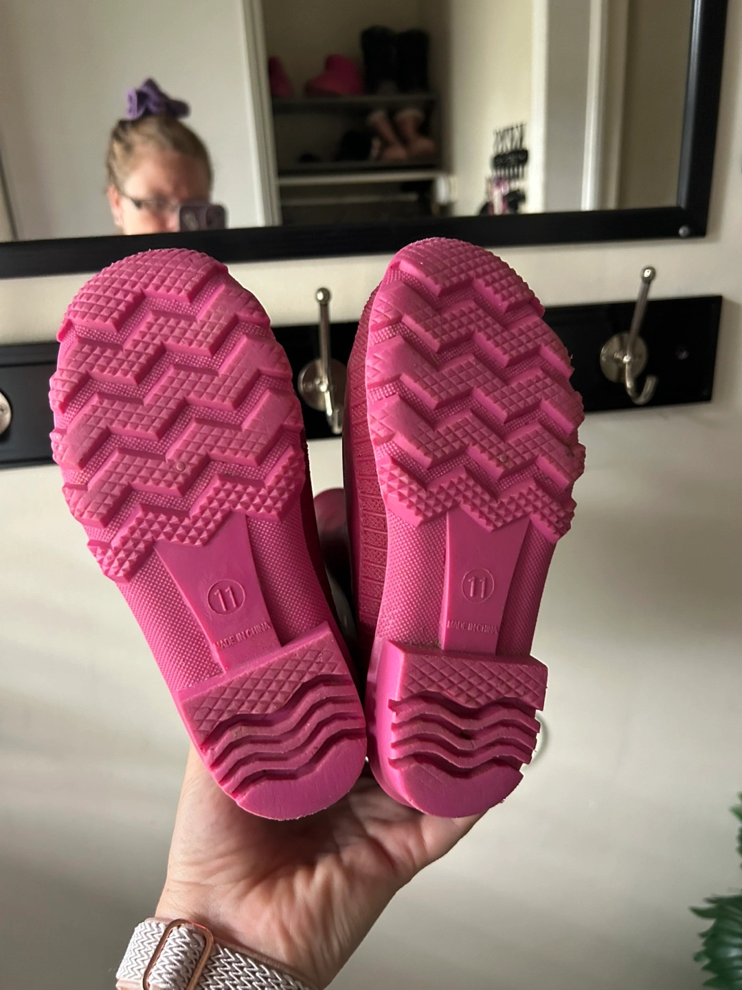 Cute pink rain boots in a size 11. Perfect for splashing in puddles on those rainy days!