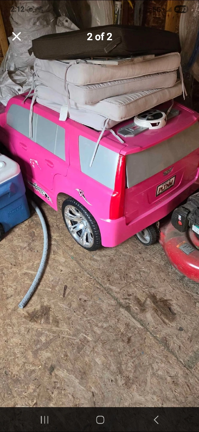 Selling a pink ride-on car for kids. It's in good condition and ready for a new home! Perfect for little ones who love to cruise around.