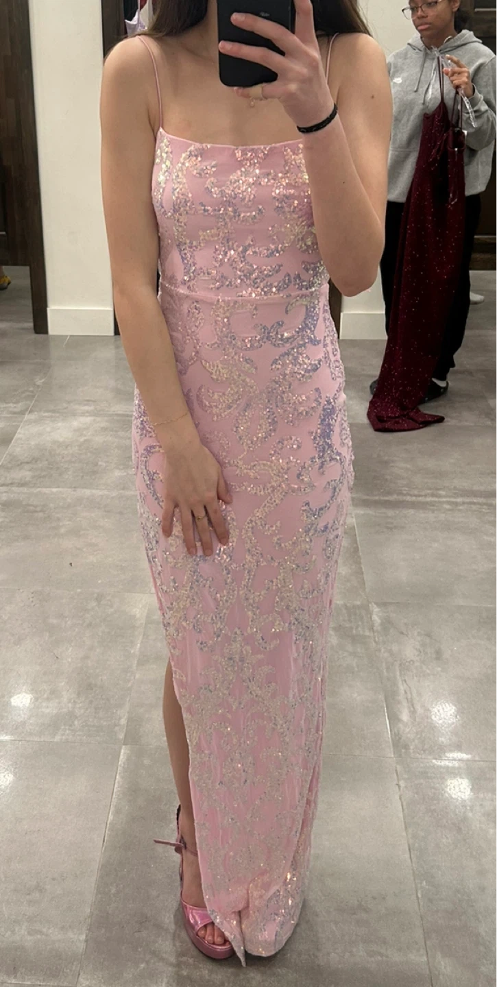 15Selling a beautiful pink sequin formal/prom dress. It's perfect for prom or any special occasion. The dress has a flattering silhouette and a subtle slit. It's in great condition and ready for a new home! no alterations done to it