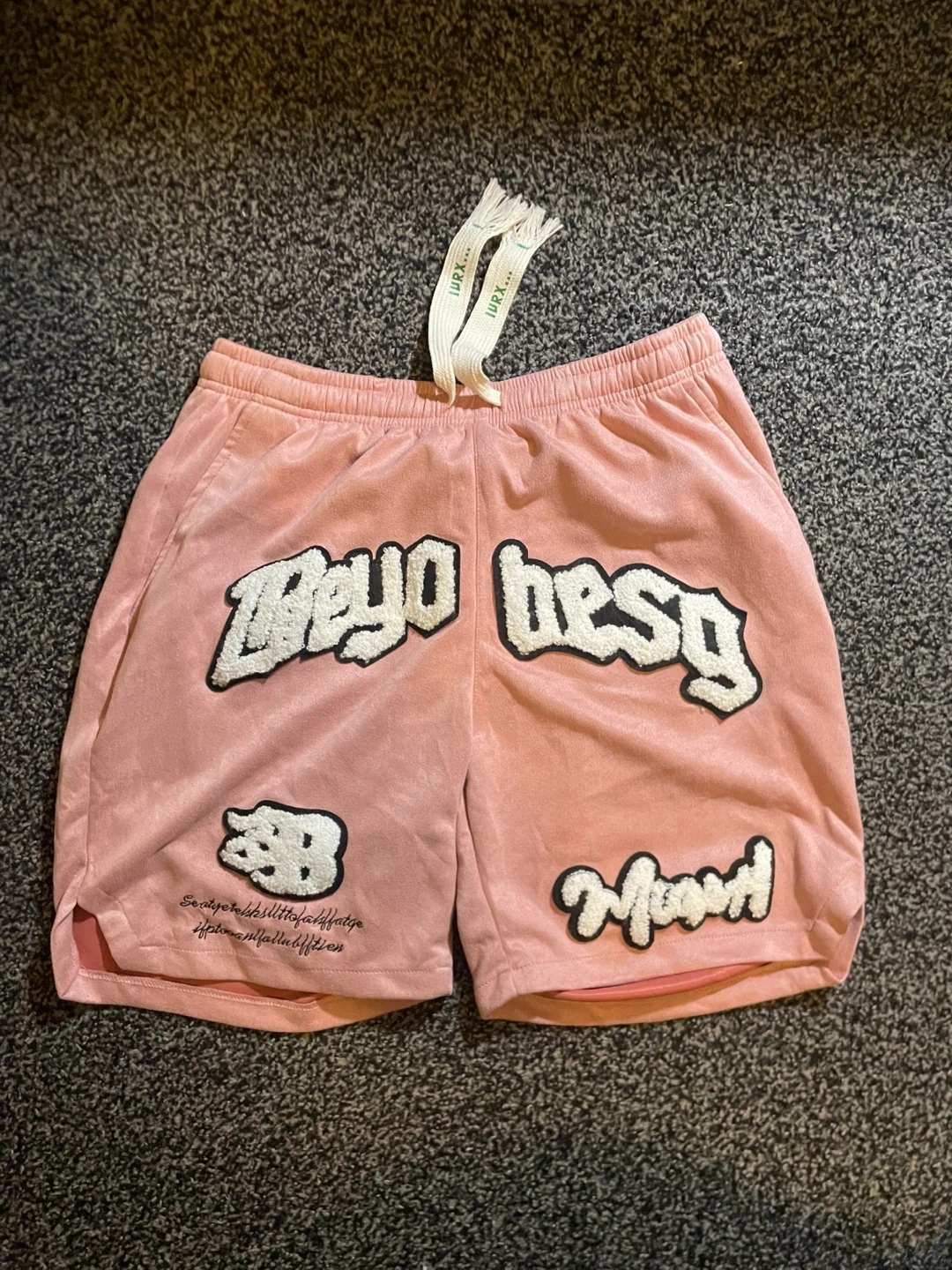 79Selling a pair of embroidered pink shorts in size L! They're made of 100% polyester and feature a unique design. The shorts are in great condition and ready for a new home. Short is basically brand new used it for 2 hours only.