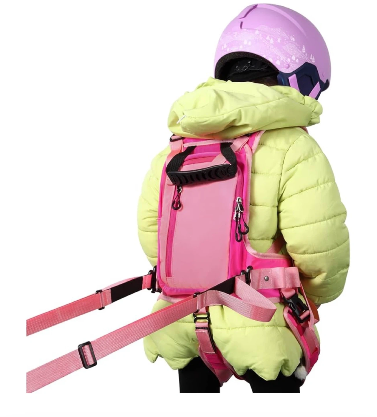 Original price is $79 Keep your little one safe on the slopes with this pink ski harness trainer! It features: - Backpack to secure the extras - Adjustable positioning for proper hip control - Adjustable shoulder straps - Length expansion - External pockets - Hip placement control - Snowboard connection