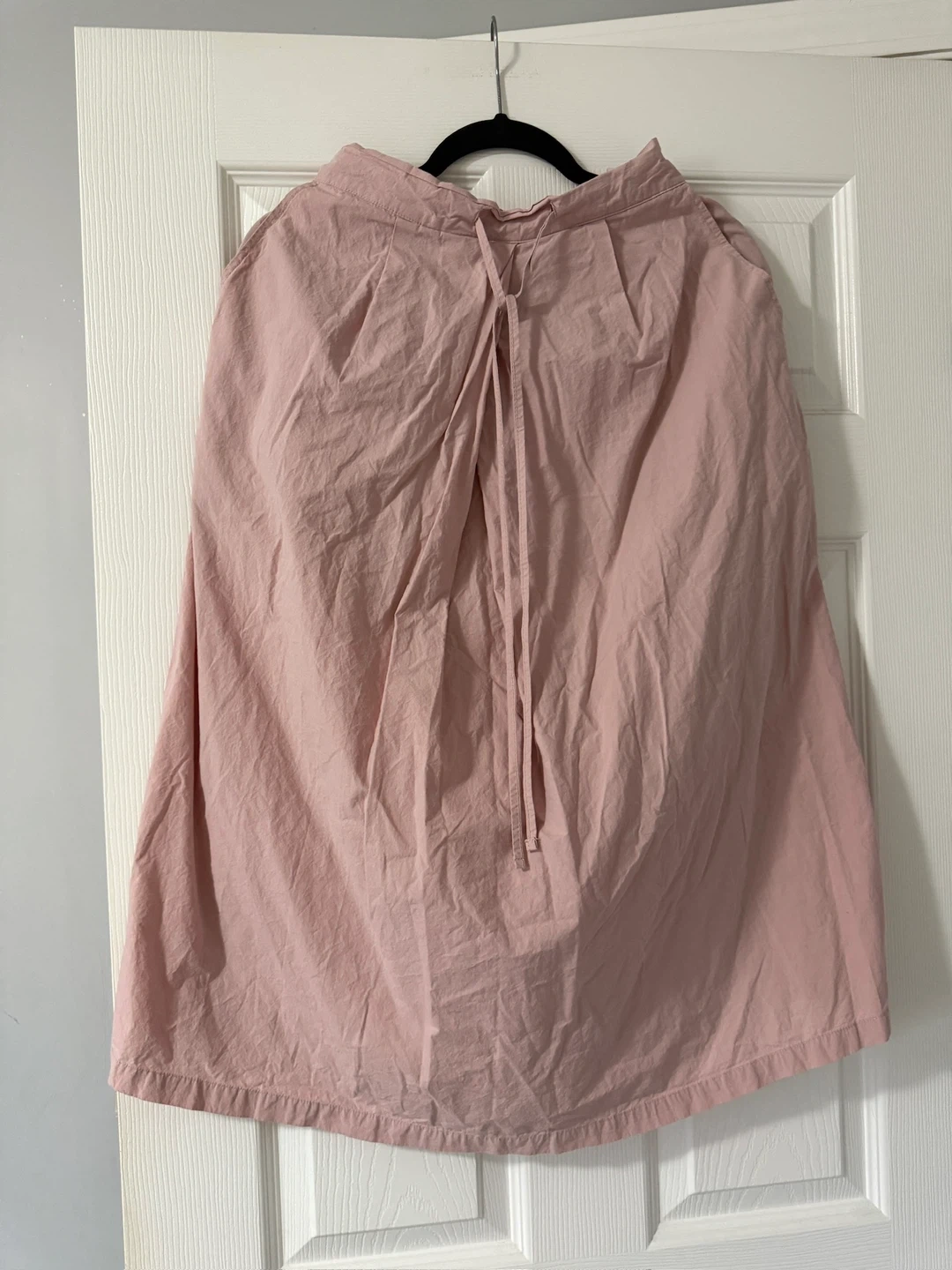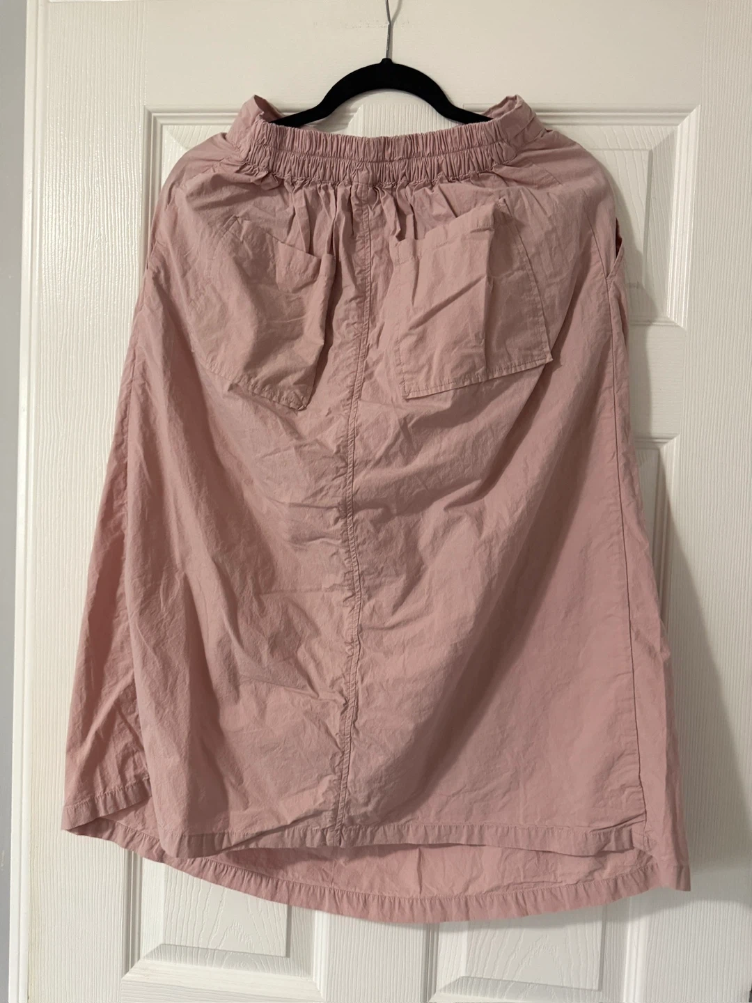 Selling a cute pink skirt! The skirt is a light pink colour and looks to be made of cotton material. It's in great condition and ready for a new home