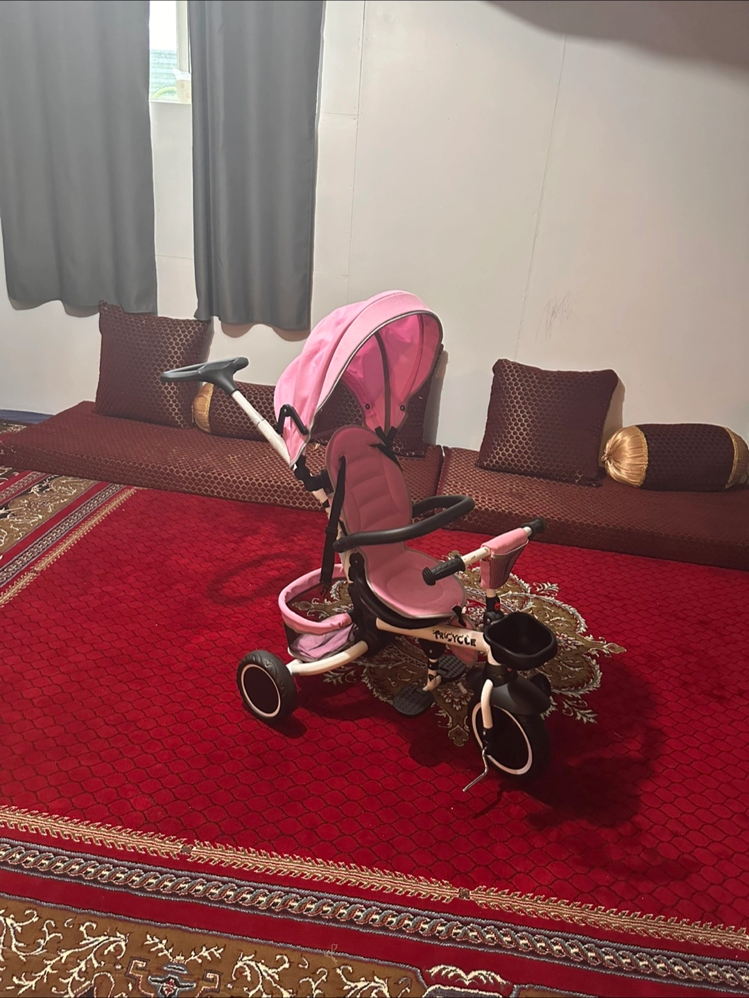 Selling a cute pink tricycle, perfect for toddlers learning to ride! It features a comfortable seat, sturdy frame, and parent handle for easy steering. Great for outdoor fun and developing coordination skills. Just one paddle pad is displaced.