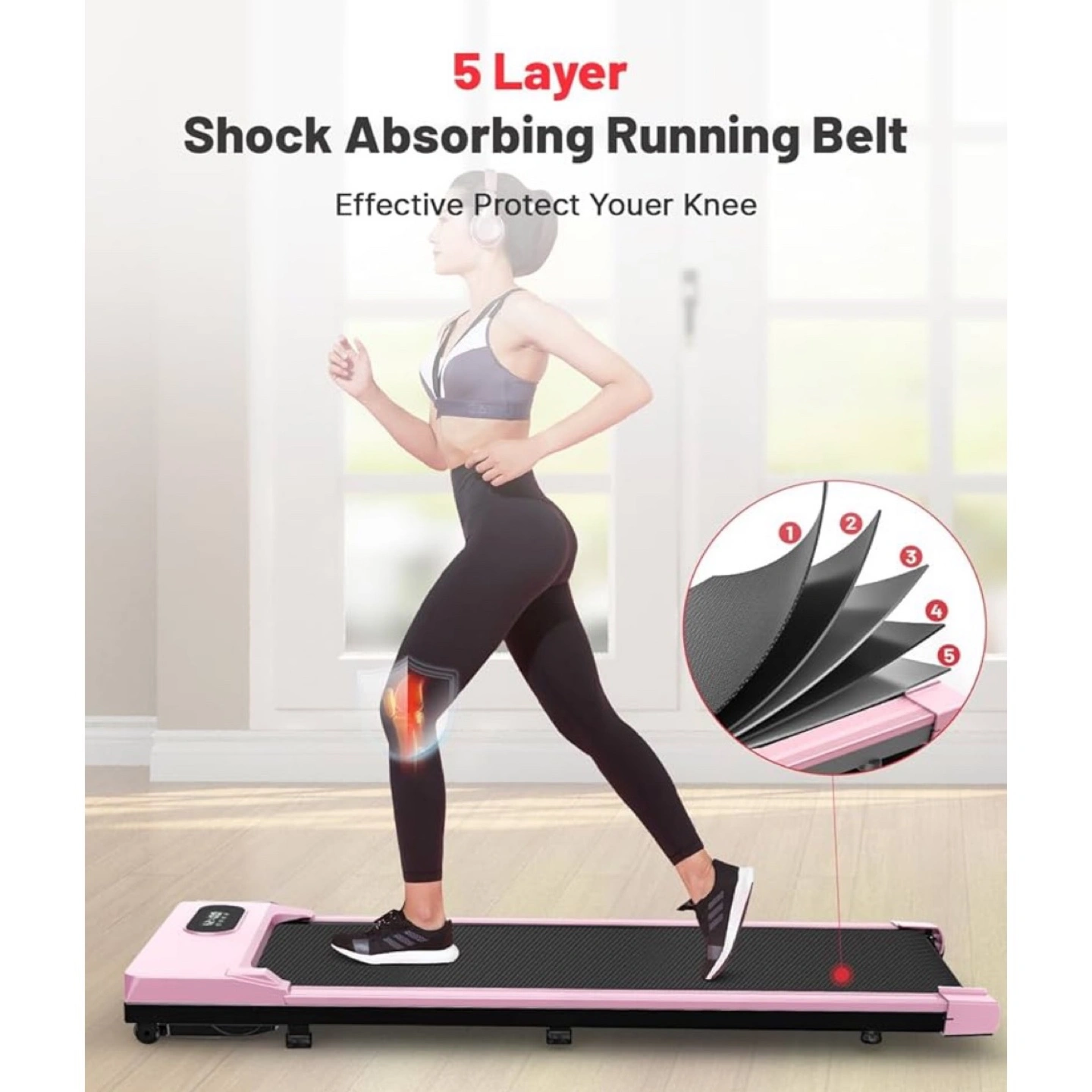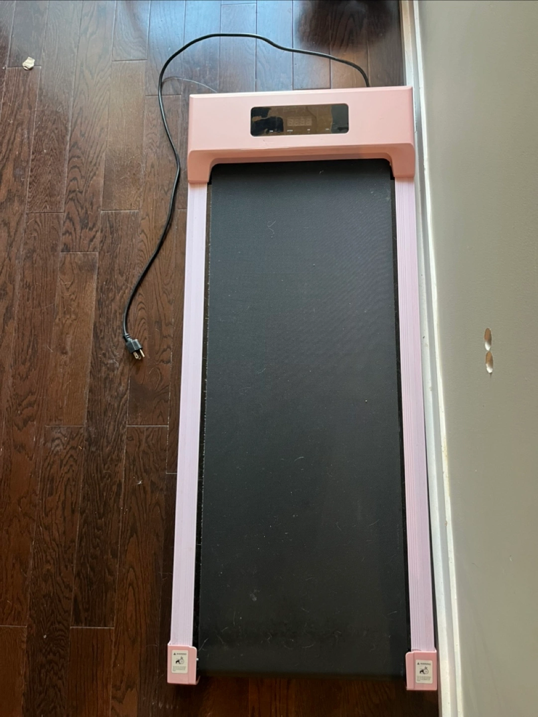 155Looking to sell my pink under desk treadmill! It's in great condition and perfect for getting some steps in while working from home. Key features: - Powerful and low noise motor - Motor Power: 2.5 HP - Weight Capacity: 120 kg - Speed Range: 1-8 KM/H - 5 Layer Shock Absorbing Running Belt