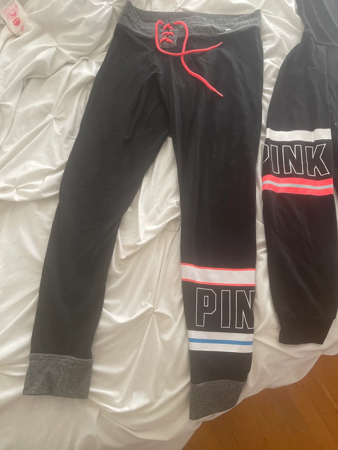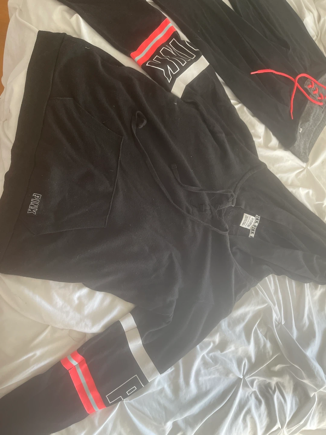 Selling a PINK Victoria's Secret matching set! Includes a cozy black hoodie and a pair of leggings with the PINK logo. Both are in great condition and ready for a new home!