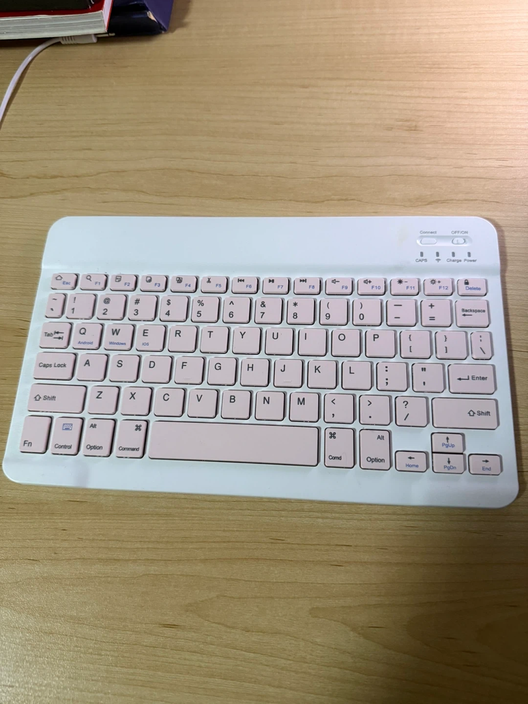 Selling a cute pink and white wireless keyboard! It's in great condition and ready for a new home. Perfect for tablets, phones, or computers!