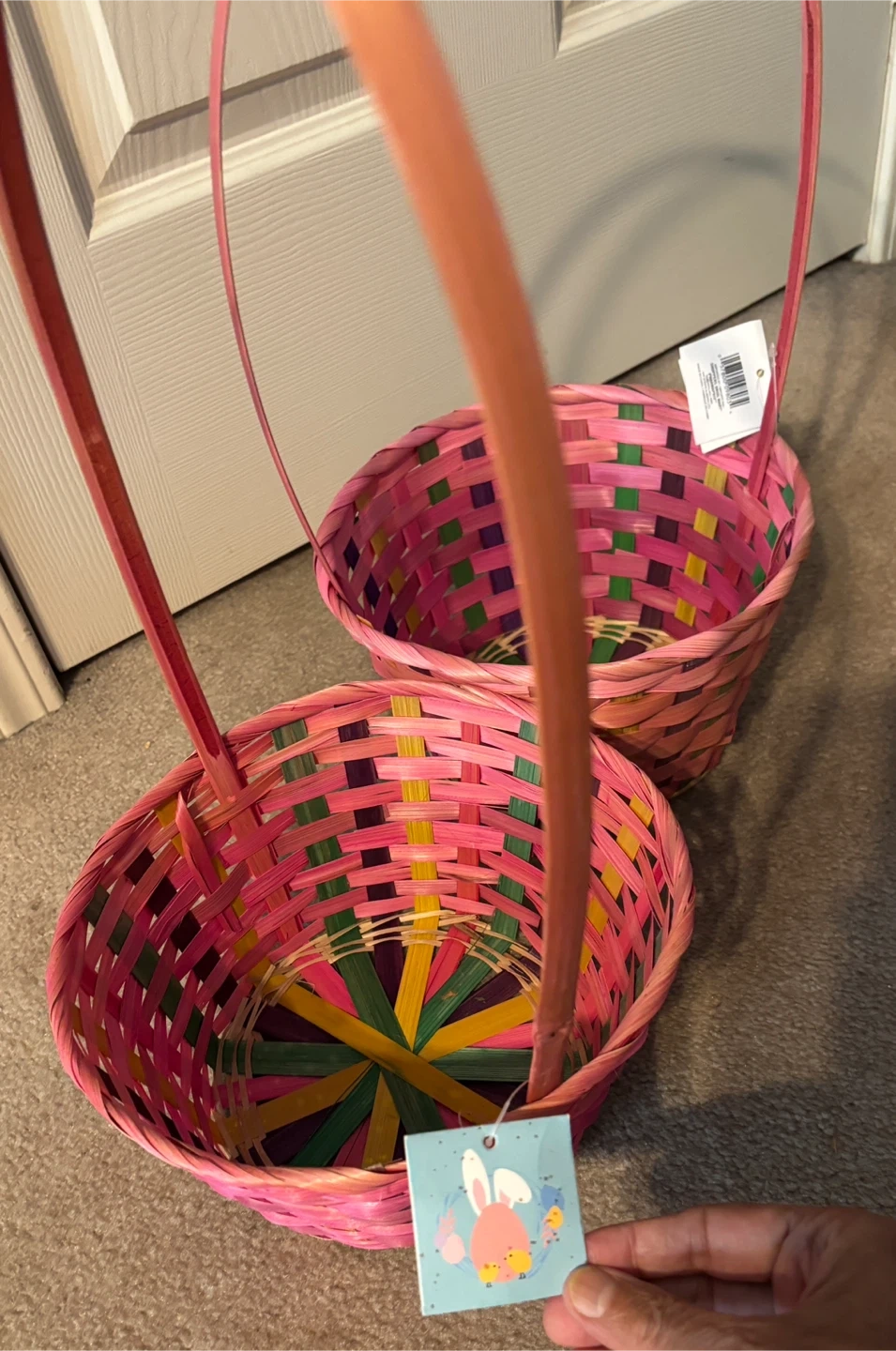 97Selling beautiful pink wicker baskets! Two available. Diameter 9 inches. They're perfect for gifts or decorating home. The baskets are in great shape and ready for a new home. $8 each .. both for $15.