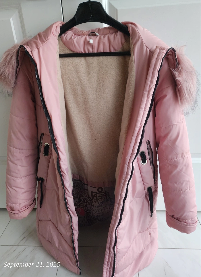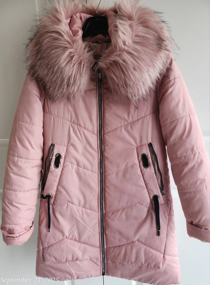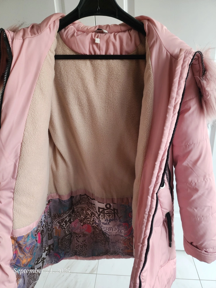 European style winter jacket for girls, ages 10-14. Very warm and water-proof. Used once, very clean, like new.