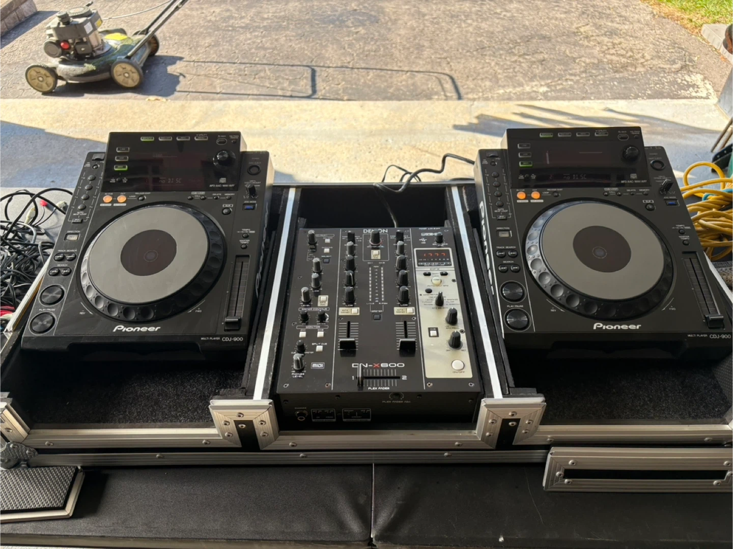 Professional-grade DJ setup in excellent working condition - USED ONLY ONCE Includes: • (2) Pioneer CDJ-900 Multi-Players – industry-standard decks with USB, CD, and Link capability (no laptop needed). • (1) Denon DN-X600 Mixer – 2-channel digital mixer with FX, USB audio interface, and MIDI control. • (1) Odyssey Flight Case – heavy-duty road case with foam lining, handles, and wheels for easy transport. Everything has been tested and functions perfectly — smooth jog wheels, clean faders, and all buttons responsive. Perfect for mobile DJs, venues, or anyone building a professional setup. Includes: power cables and RCA hookups. ✅ Excellent condition ✅ Road-ready and reliable ✅ Clean setup, stored safely indoors 💥 This is a full, ready-to-use pro DJ rig — just add speakers and you’re good to go!