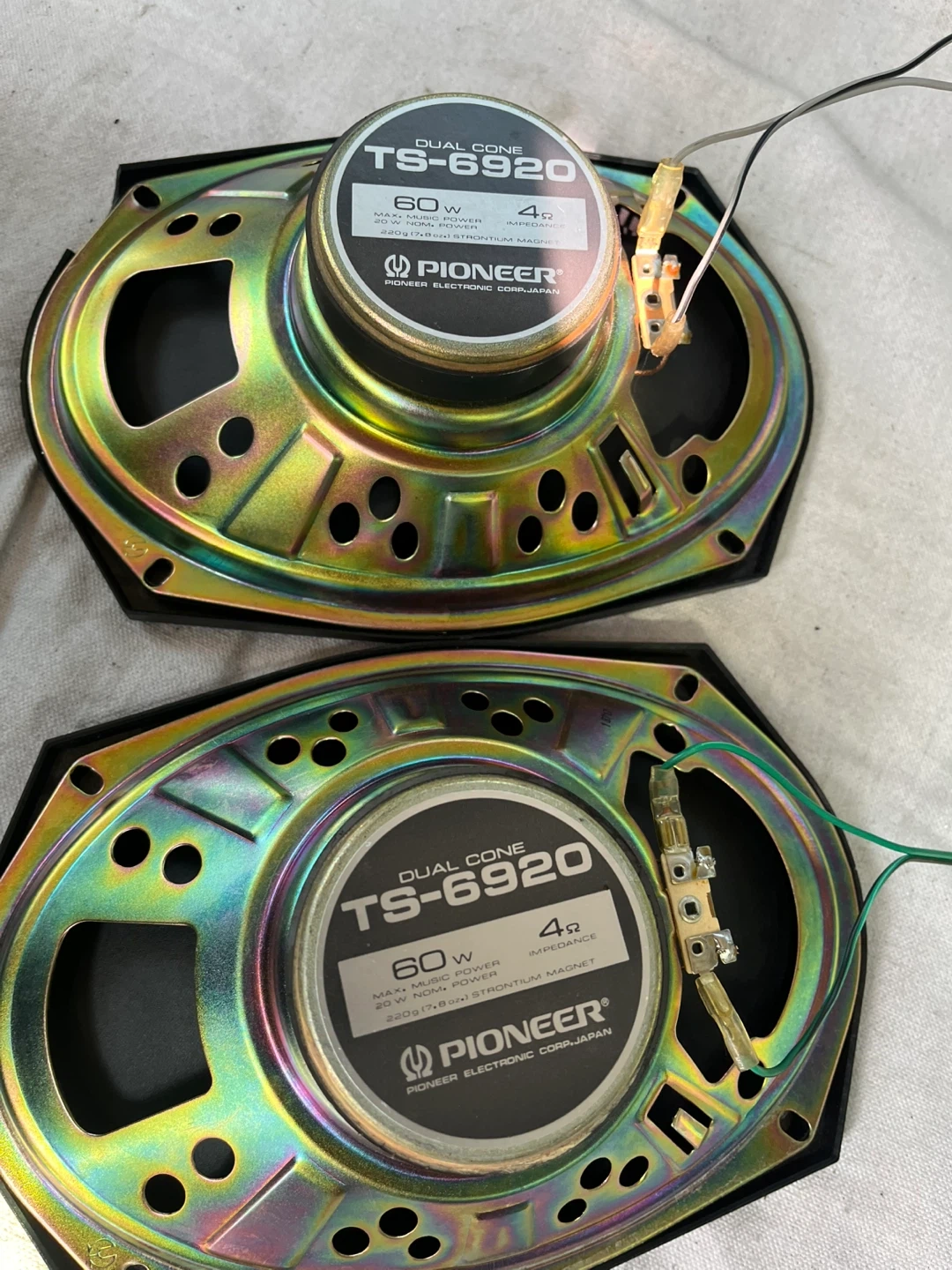 Selling a pair of Pioneer TS-6920 dual cone speakers. They are 60W with 4Ω impedance. They are in good condition and ready to be installed!