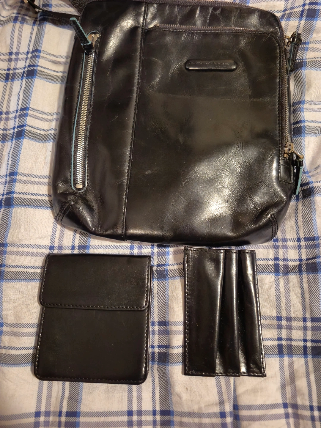 Mens piquadro black square big bag. Material is leather.Comes with adjustable shoulder strap. Zipper pocket, slip pockets interior, also has iPad compartment. Has removable pen Holder and removable zipped up pouch. asking $50 Brand- piquadro Collection- Black square Type- pocketbook Material- leather 23.5 cm x 27.0 cm x 4cm Please only serious buyers , I don't need to go out of my way to meet someone for them to be like "I'm sorry it's not what I'm looking for" For pick up or can meet somewhere as well I live between stadium, Granville SkyTrain stations and up the street from waterfront station