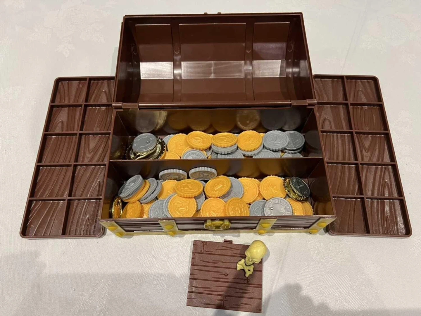 10A fun pirate treasure chest toy set! Perfect for imaginative play, it comes with a chest, coins, and a little skull figure. The chest opens up to reveal the treasure inside. Great for kids who love pirates and adventures