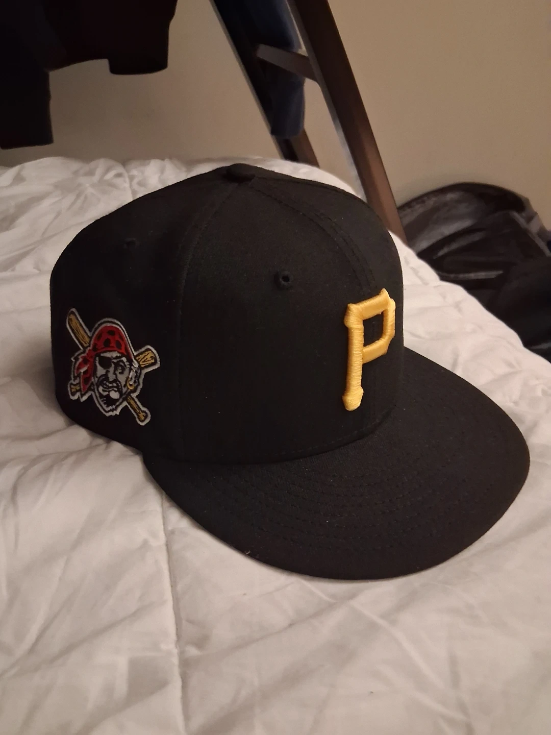 10Selling a Pittsburgh Pirates baseball cap. It features the team's logo and a gold 'P' on the front. Great for any Pirates fan!