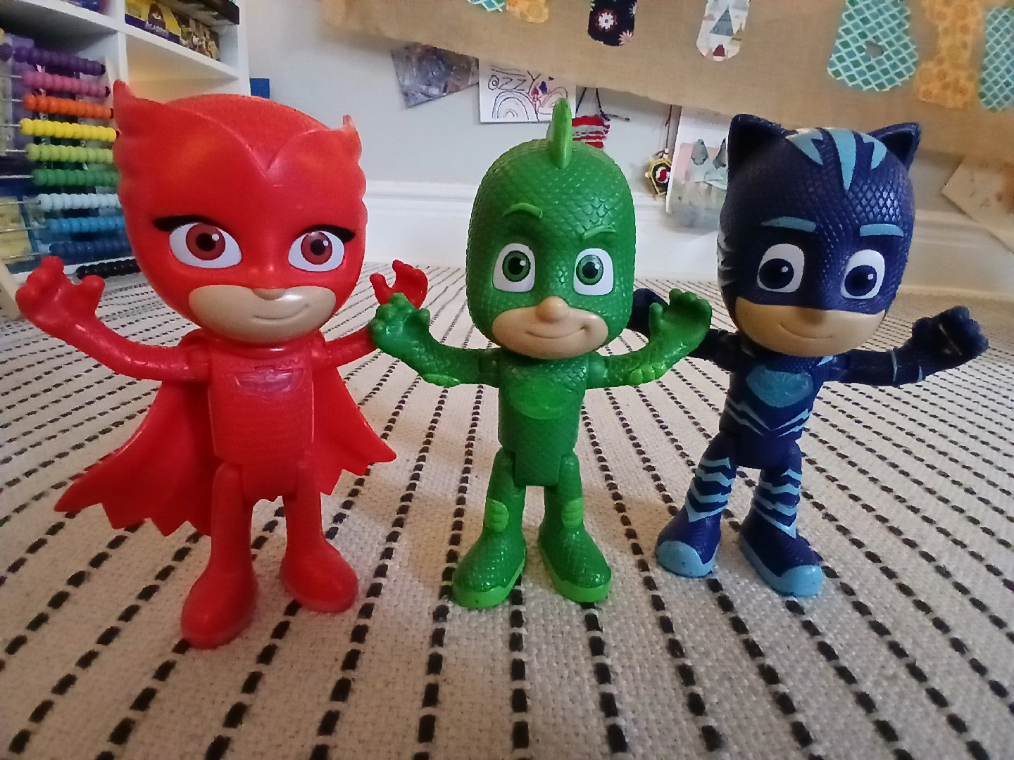 76Selling a set of 6" PJ Masks action figures that talk <still!>! Includes Owlette (red), Gekko (green), and Catboy (blue). They're in great shape and ready for a new home for imaginative play.