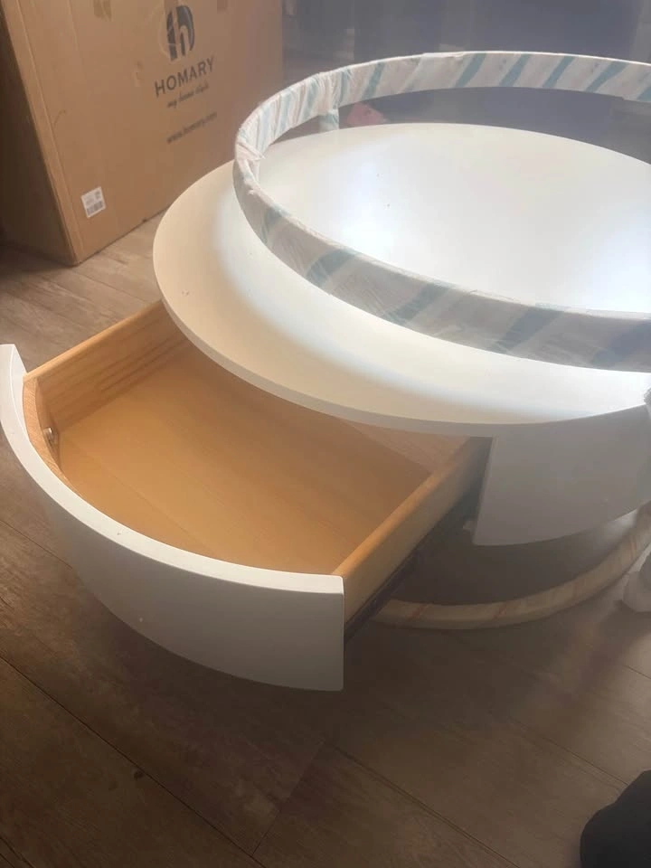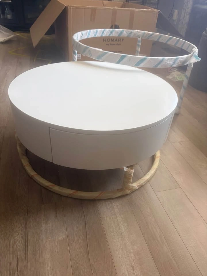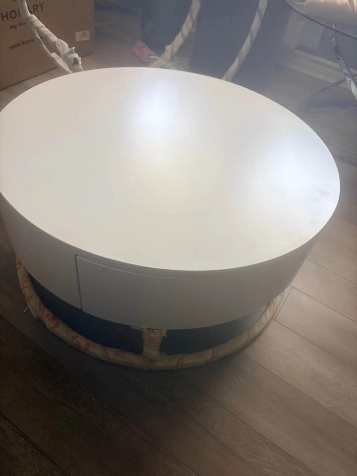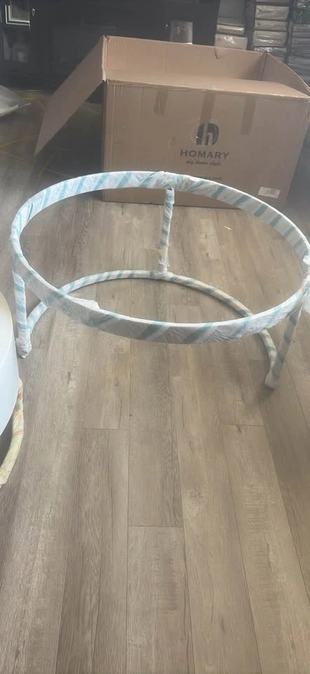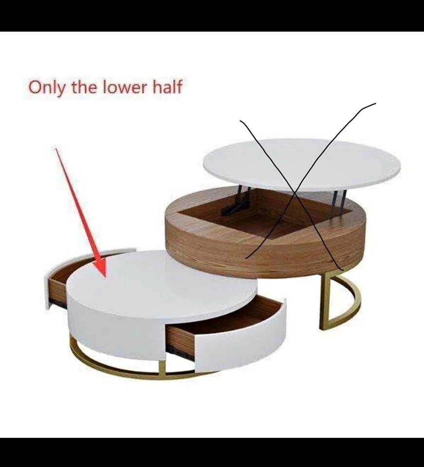 Brand new, taken out of the box for photos. Please look at the photos as this is only the lower half, and the gold base for the top is also included. The tabletop is not included. Priced low to sell quickly. The coffee table swivels. This could be a DIY project for someone who wants to create their own top frame.