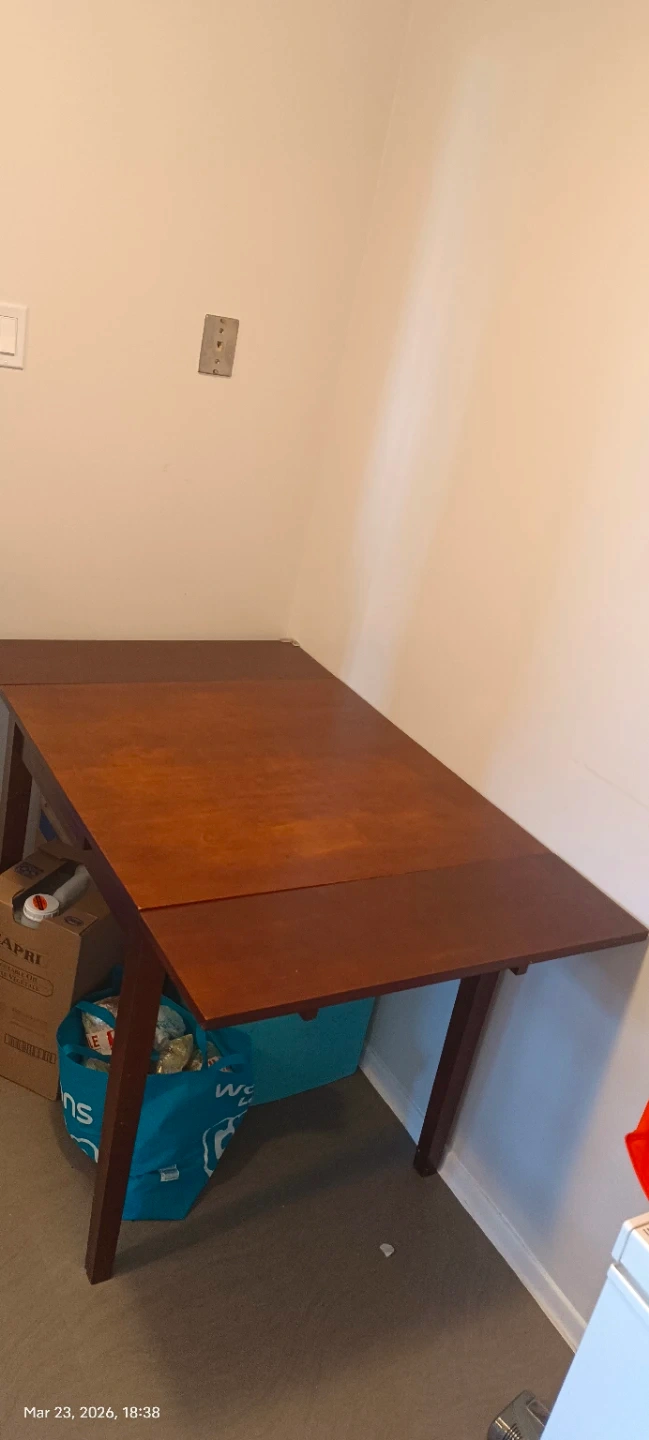This is a Red Barrel Studio extendable dining table. It's made of solid wood with a natural finish. The table extends to accommodate more guests. This would be useful for smaller dining spaces needing occasional extra room.