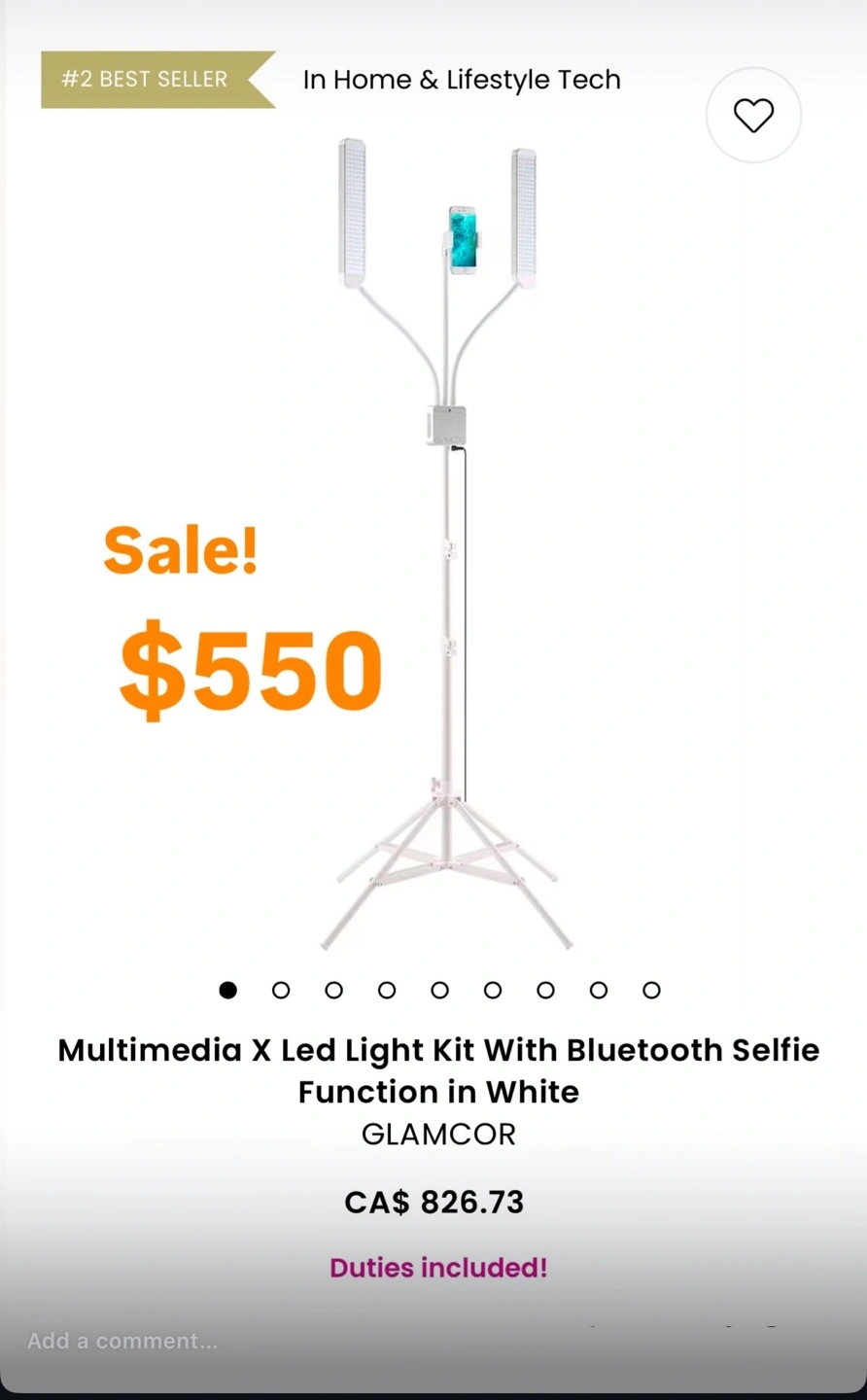 White LED light kit. Features Bluetooth selfie function. Includes tripod stand. Excellent for content creation.