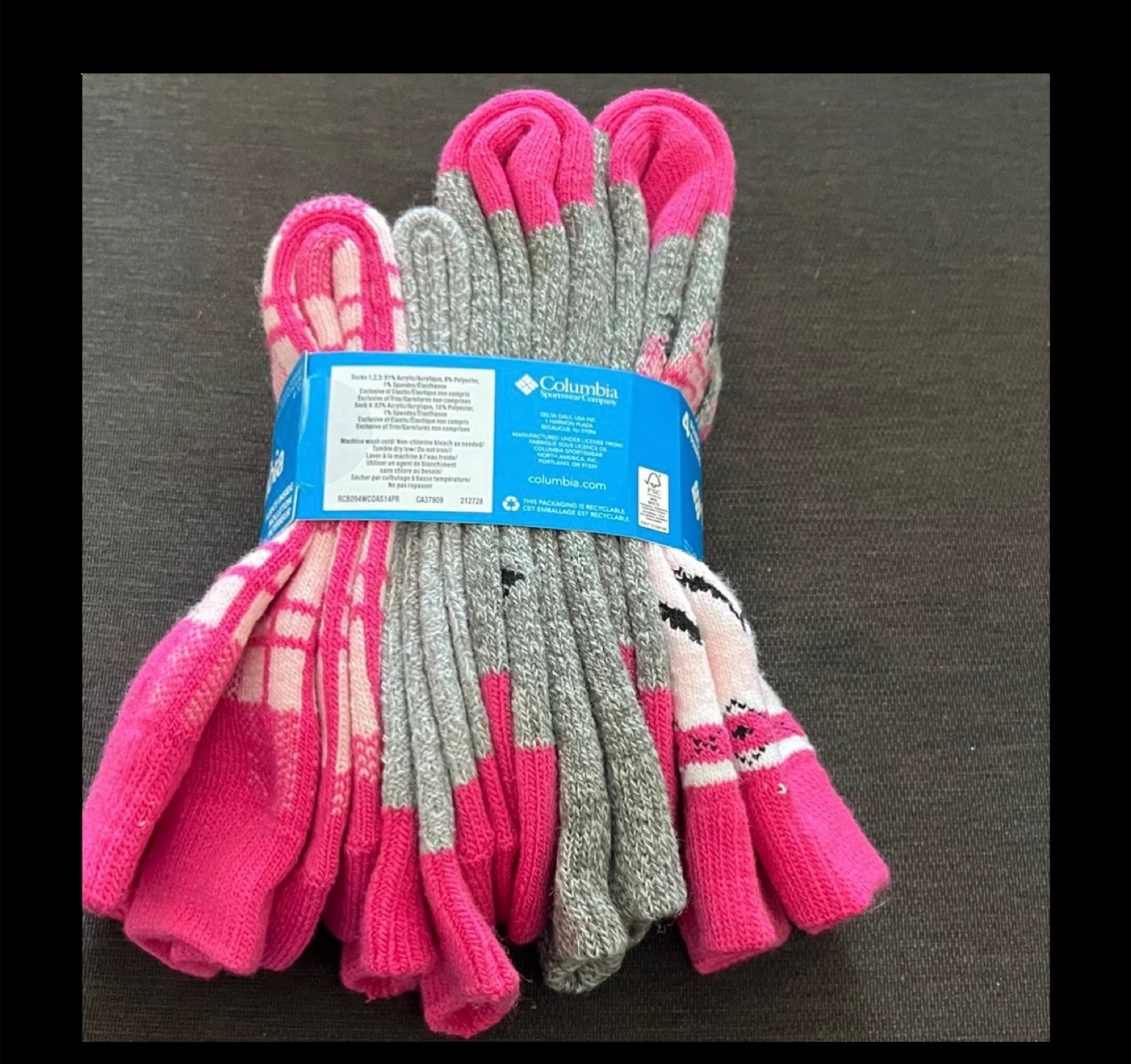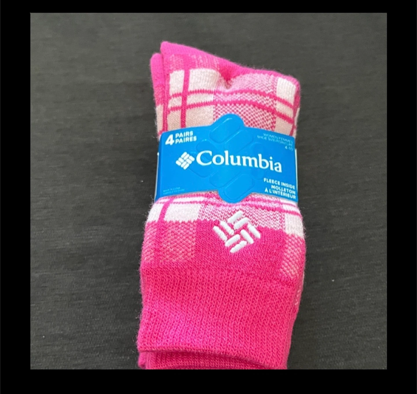 Columbia women's crew socks. Features fleece lining for extra warmth. Includes 4 pairs per pack.