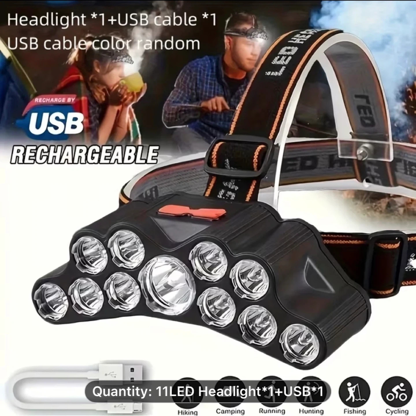 1pcs 11 Core LED Headlamp, Outdoor USB LED