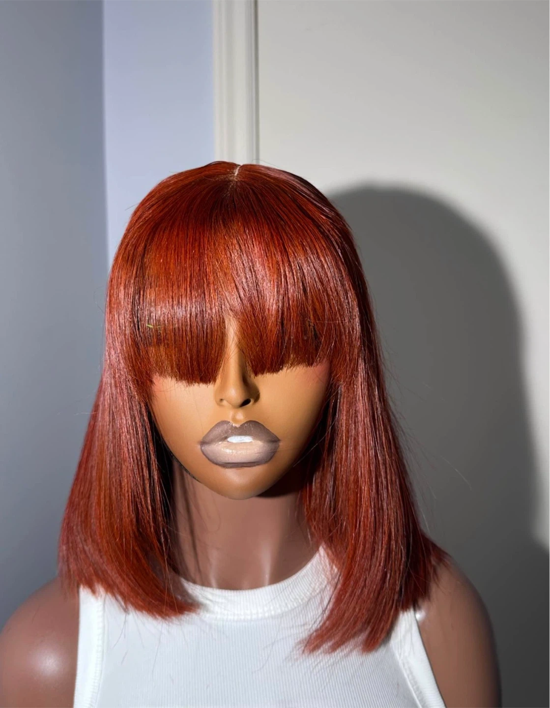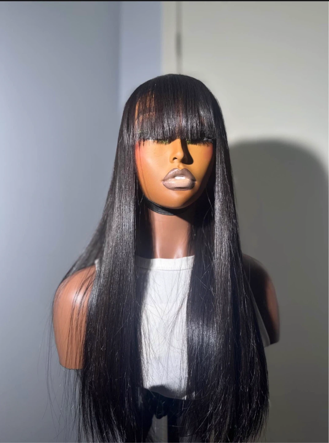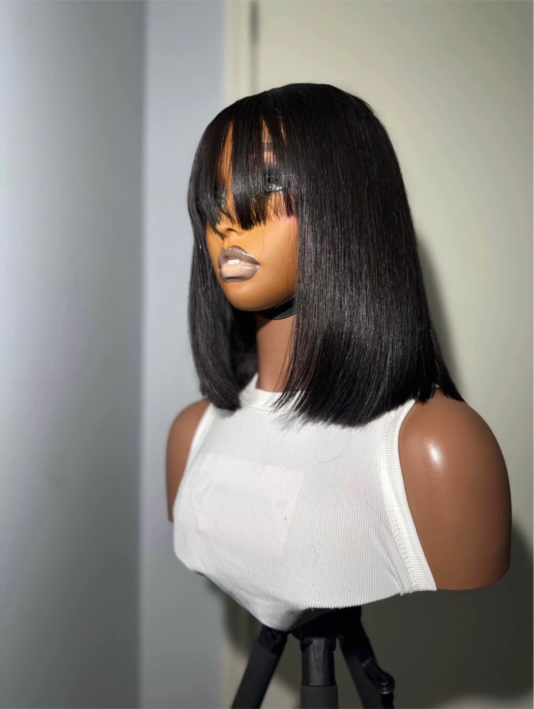 This is a straight bob wig with bangs, styled in a classic black colour. It's made with synthetic hair for a natural look and feel. A great option for everyday wear or special occasions! Prices varies depending on the wigs