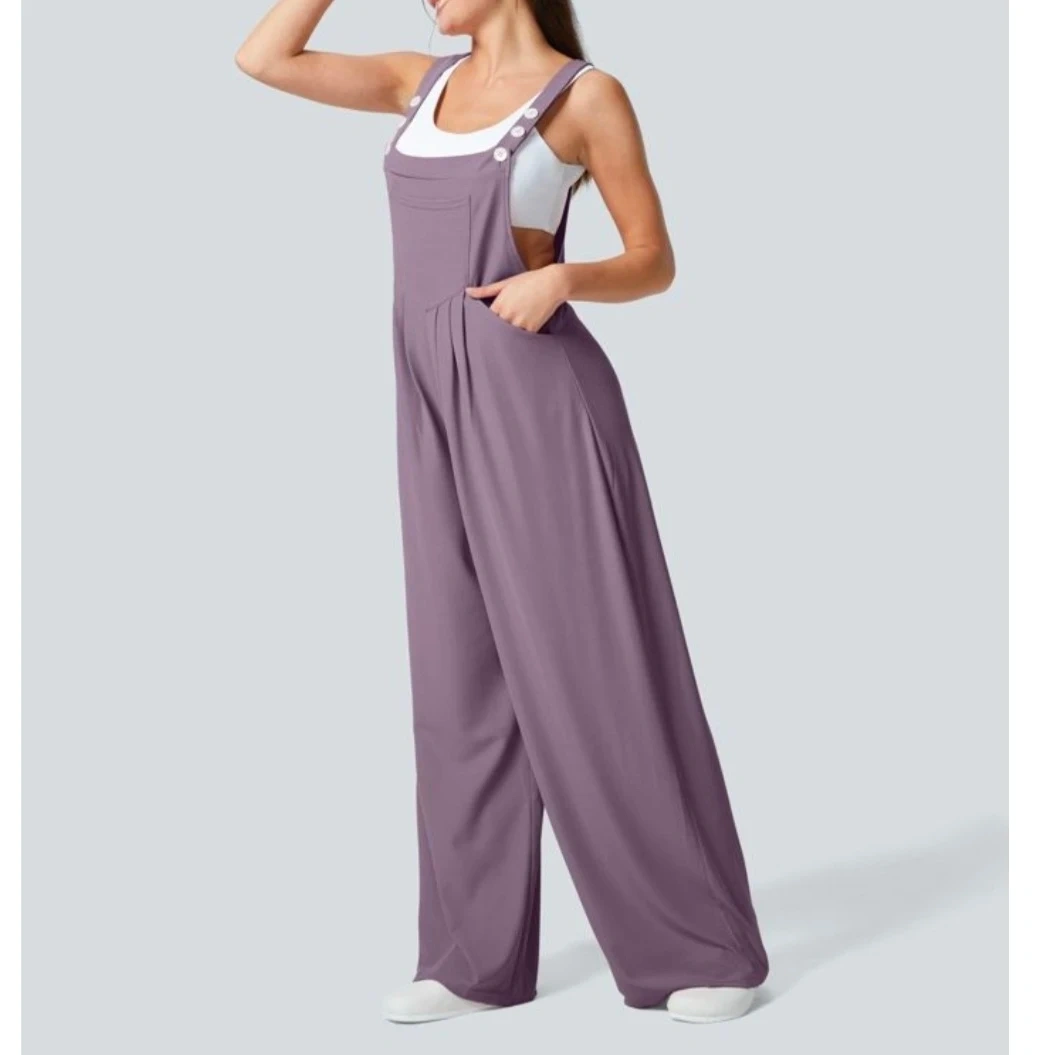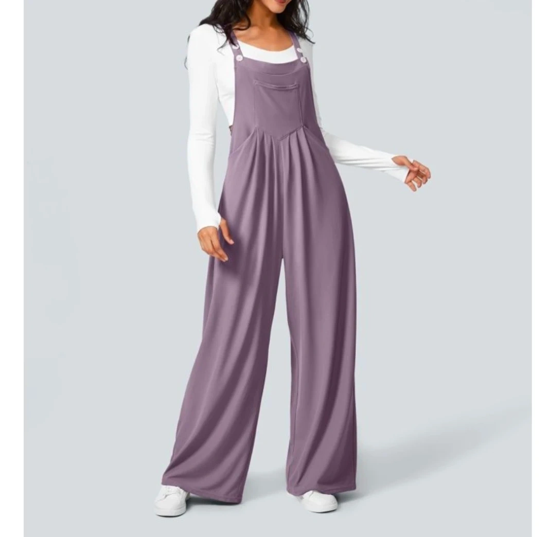 Halara Pocket Waffle Casual Overalls – Hibiscus Purple (XL)