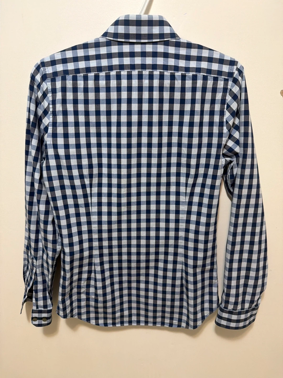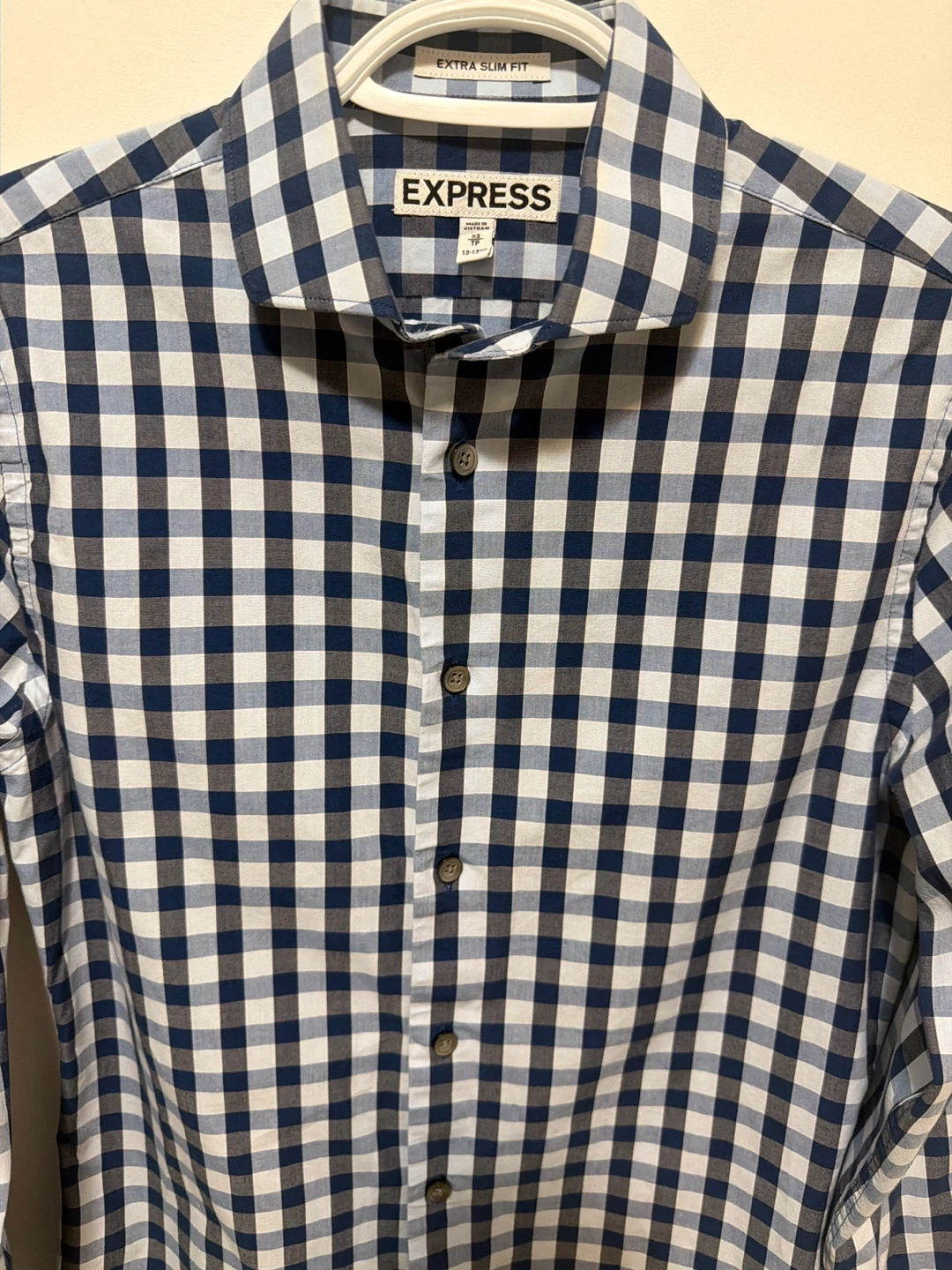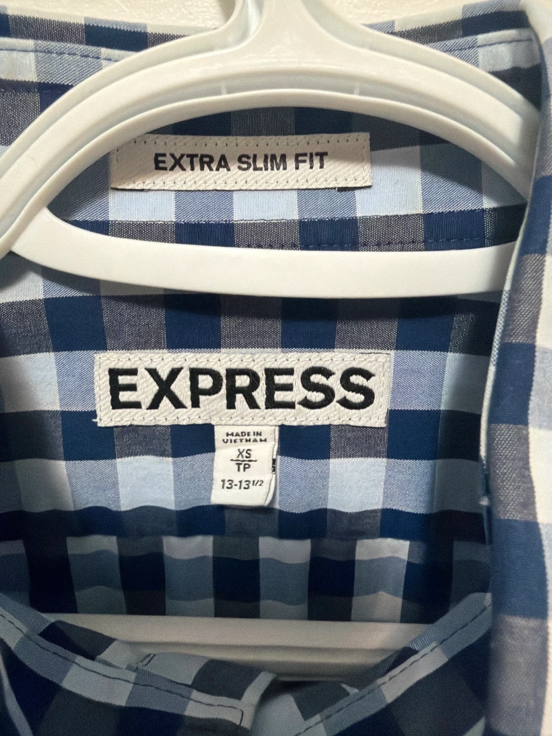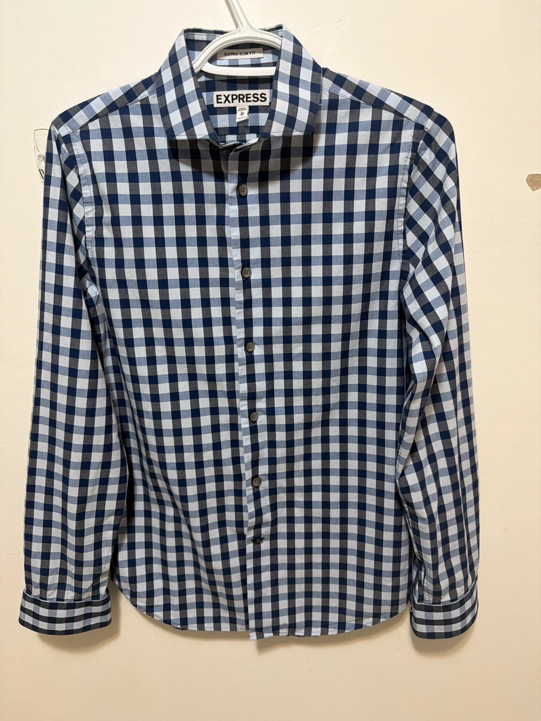 Express Men's Blue Gingham Extra Slim Fit Dress Shirt - XS