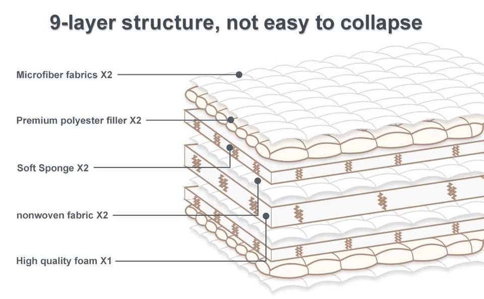 【 9-Layer 】:Designed to perfectly contour to your body, this medium-firm topper and high-density foam structure ensures lasting support and enhanced sleep experience.