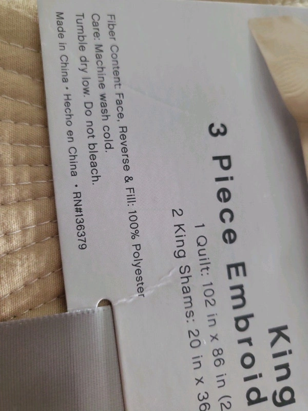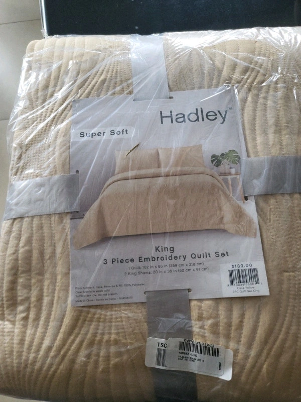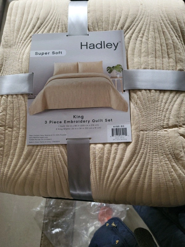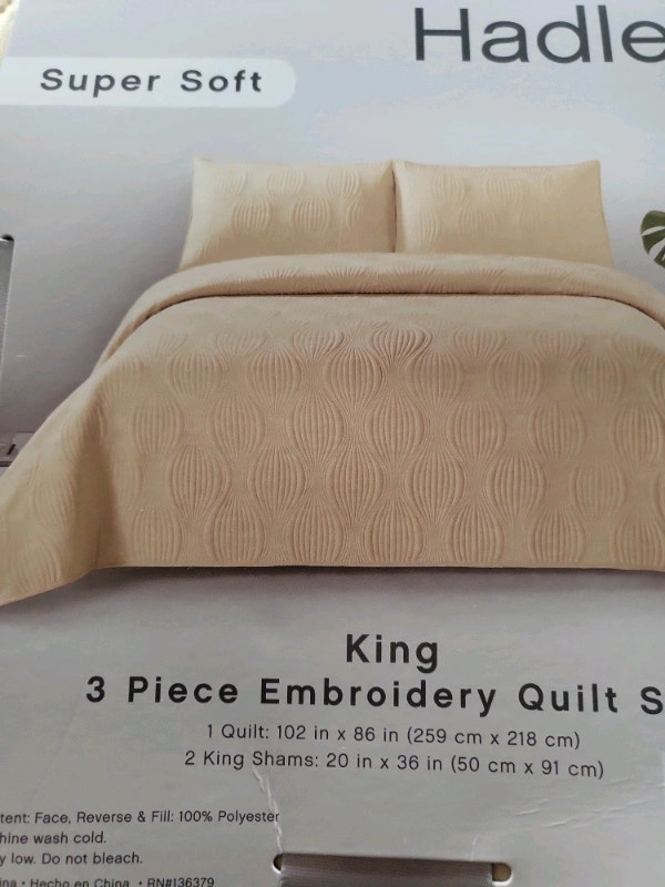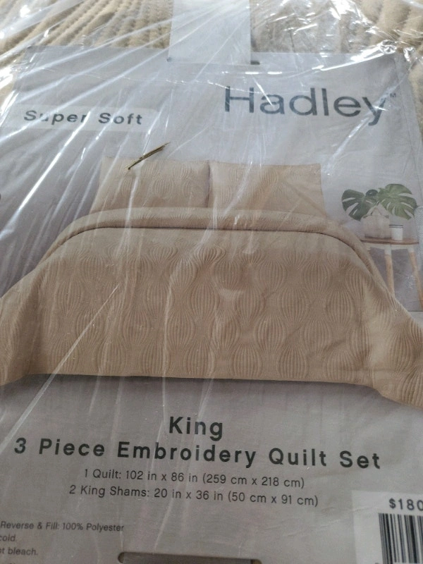 Pottery Barn Hadley 3 piece Embroidery quilt set, KING SIZE. Super soft in a nice neutral sand color to compliment your decor. Retail $180. Cash accepted.