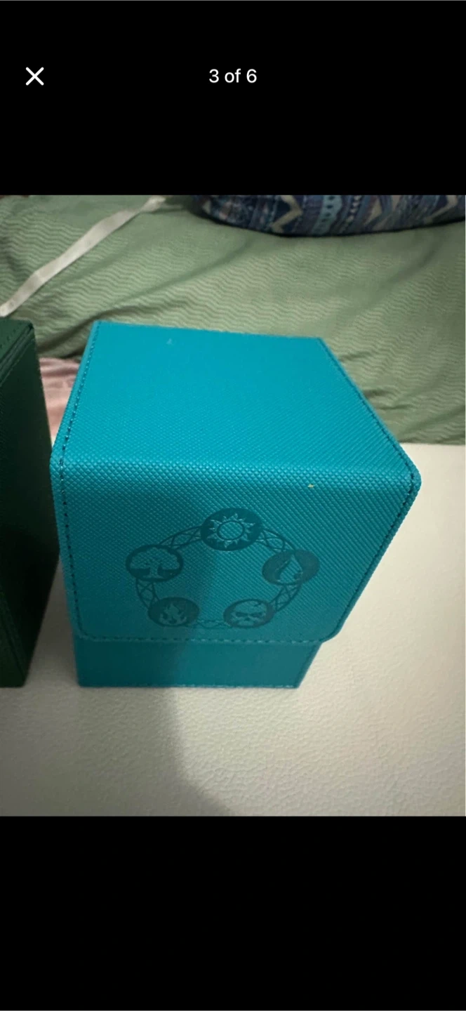 This ZLCA TCG deck box is made with waterproof textured PU leather and has a premium soft microfiber lining. It holds up to 100 sleeved TCG gaming cards. Four powerful magnets ensure a precise and secure closure.