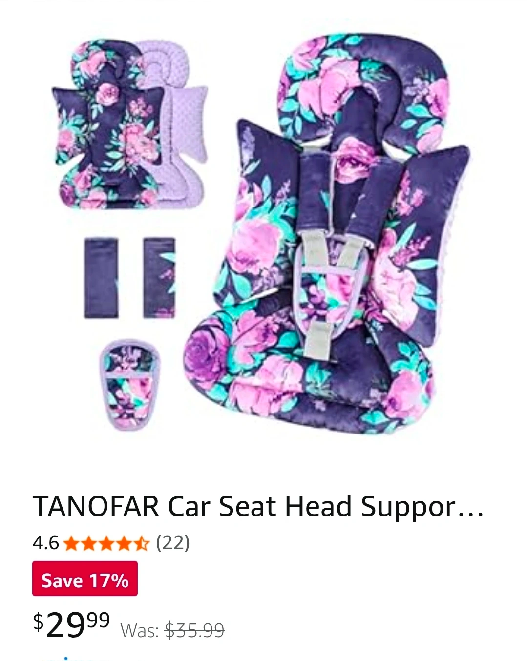 TANOFAR car seat head support and cover set with a floral print. Includes head support pillow and car seat canopy. Keep your little one comfy and protected!
