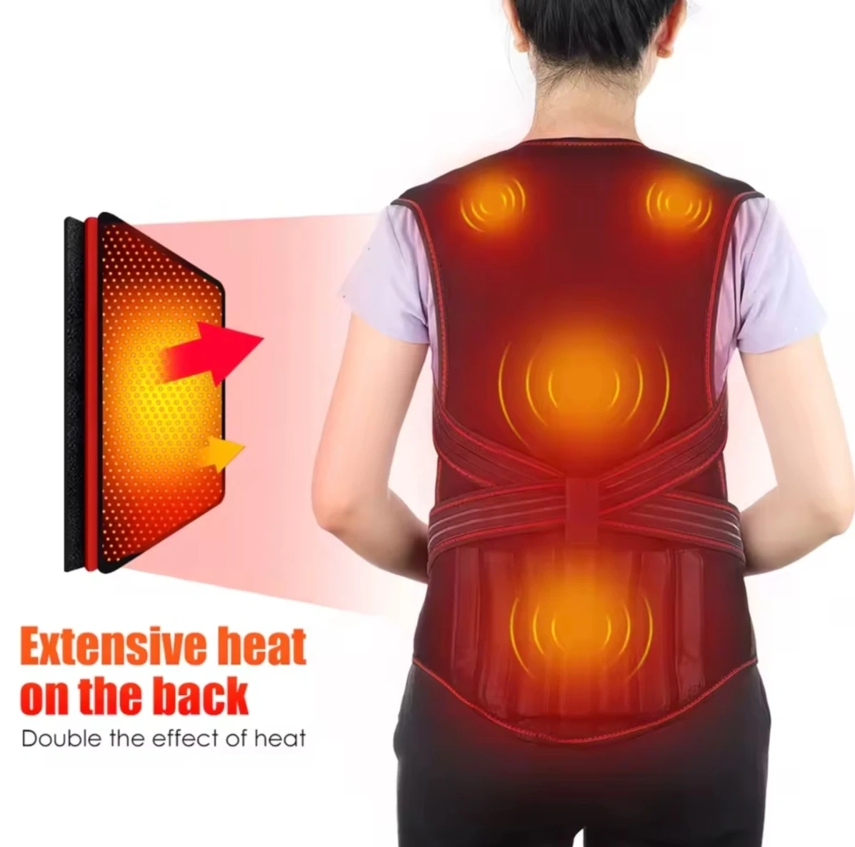 This back brace offers extensive heat therapy for your back. It's designed with breathable material and features an acupuncture dot matrix for long-lasting warm treatment. Built-in 111 magnets enhance the effect. It's soft and comfortable with an ergonomic wear fit.