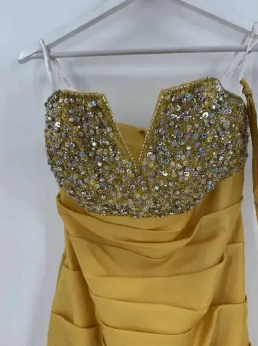 Tony Bowls Le Gala Yellow Beaded Mermaid Gown Size 6