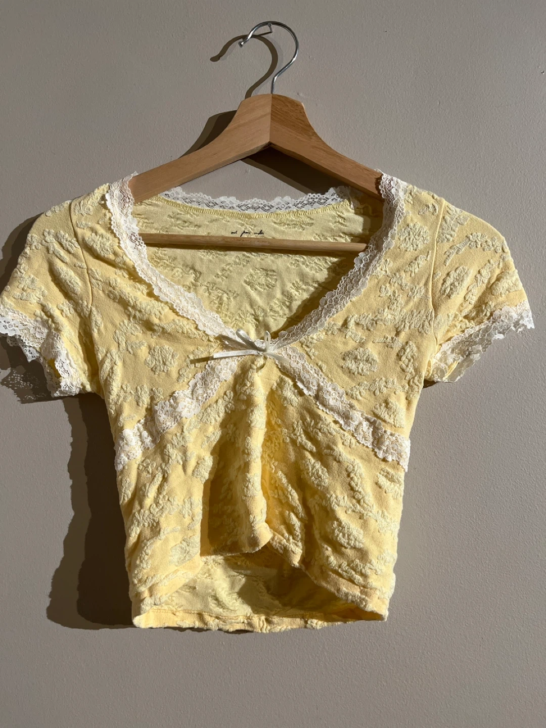 Y2K aesthetic yellow short-sleeve crop top. I swear I’ve seen Ice Spice wear the same but just can’t find the pic! Size is M but definetely a tight fit,