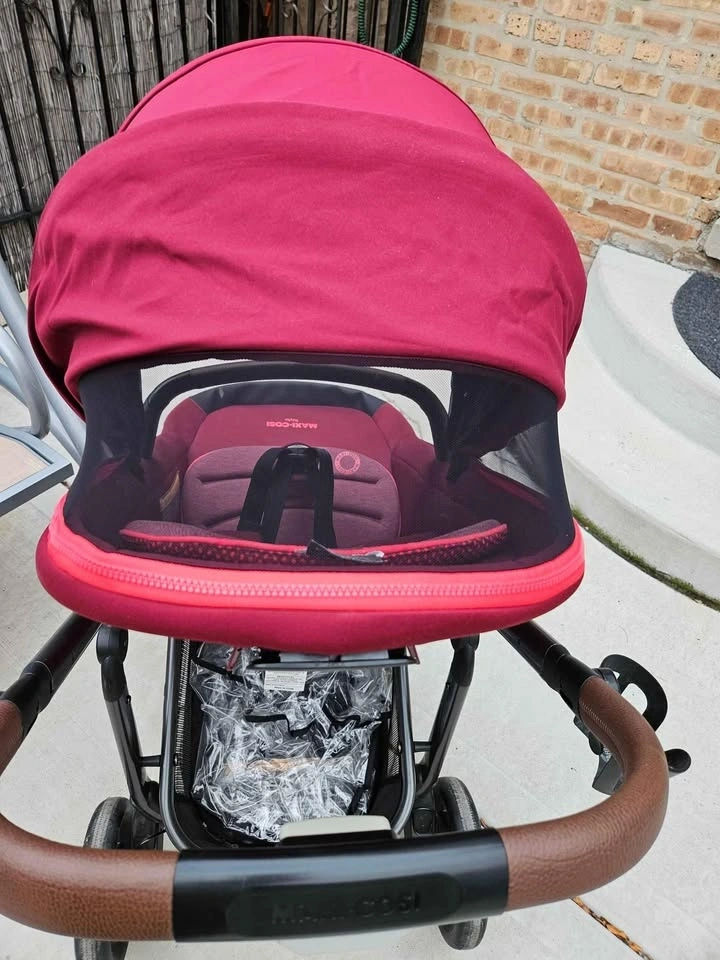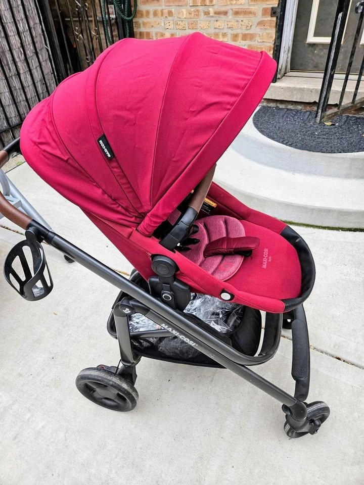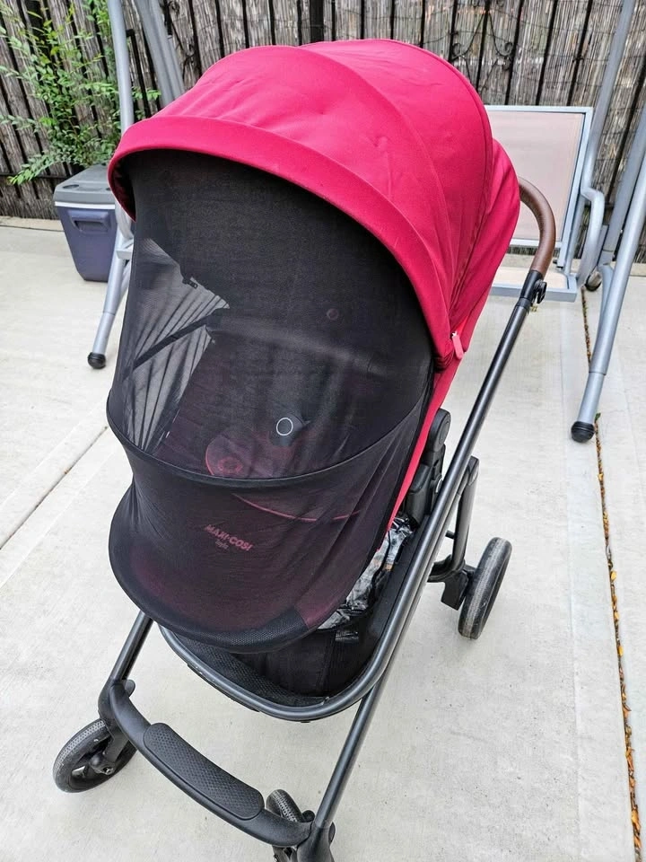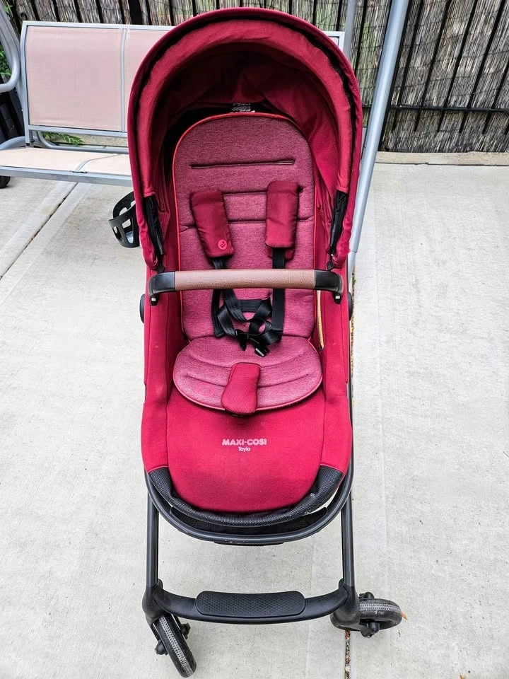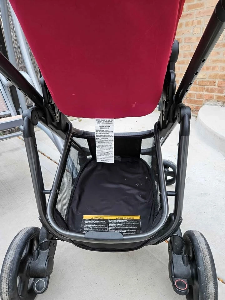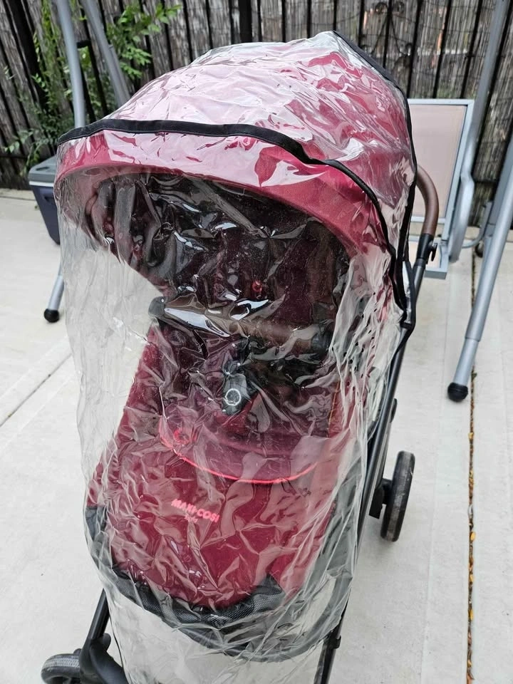 Awesome stroller that we loved using for our first kiddo. Good fit for older babies (6m+) and toddlers! It is easy to use, had a smoothe ride, and is fairly lightweight. A few scuffs and minor wear and tear, but otherwise it is clean and in great condition! It has a lot more use left in it, but we are parting ways because we use a double stroller now instead. Cup holder & rain cover are included. (rain cover has a small tear at the base).