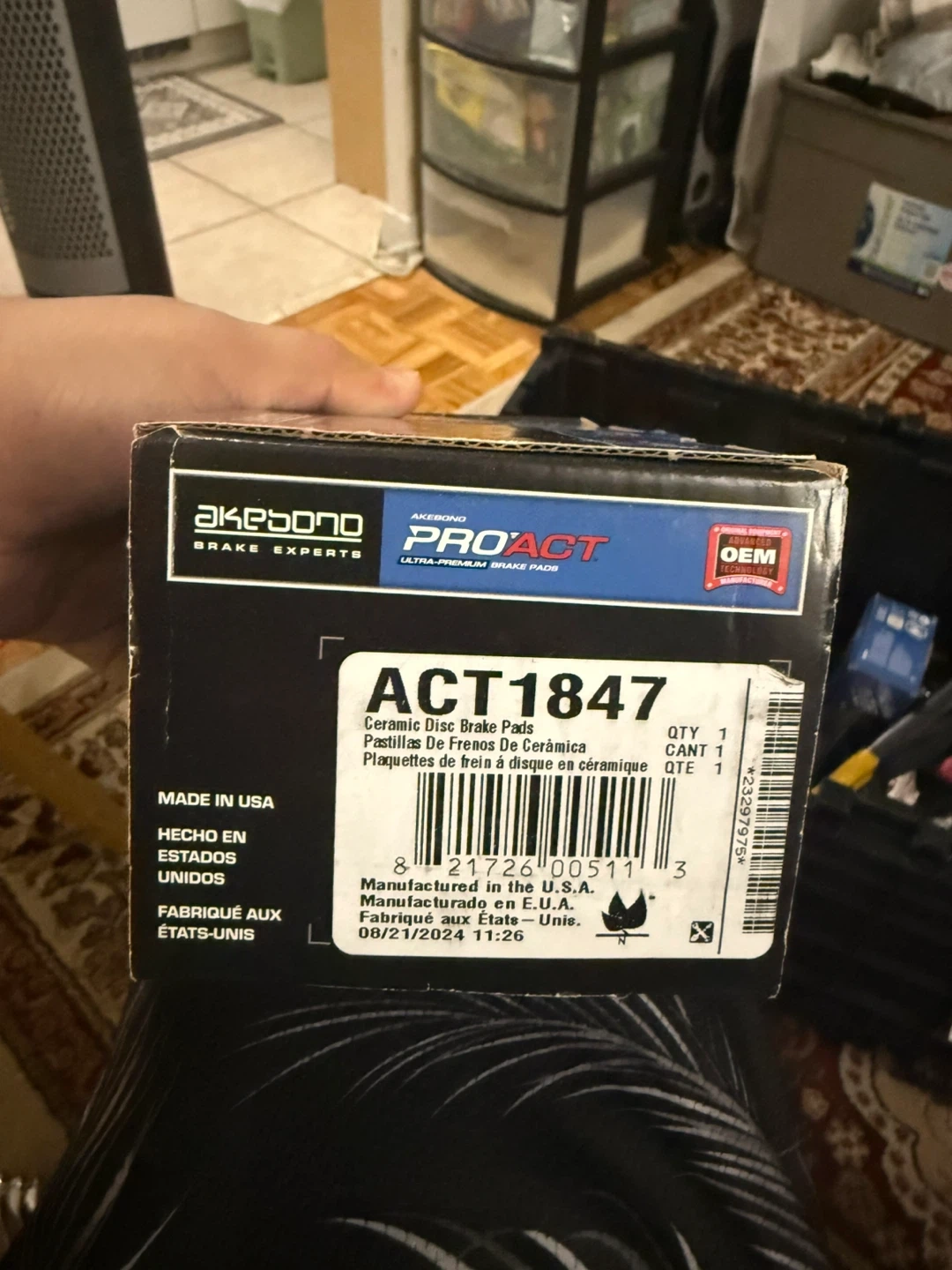 AKEBONO ACT1847 Ceramic Disc Brake Pads. Manufactured in the U.S.A. Includes anti-squeal shims. Brand new in a box.
