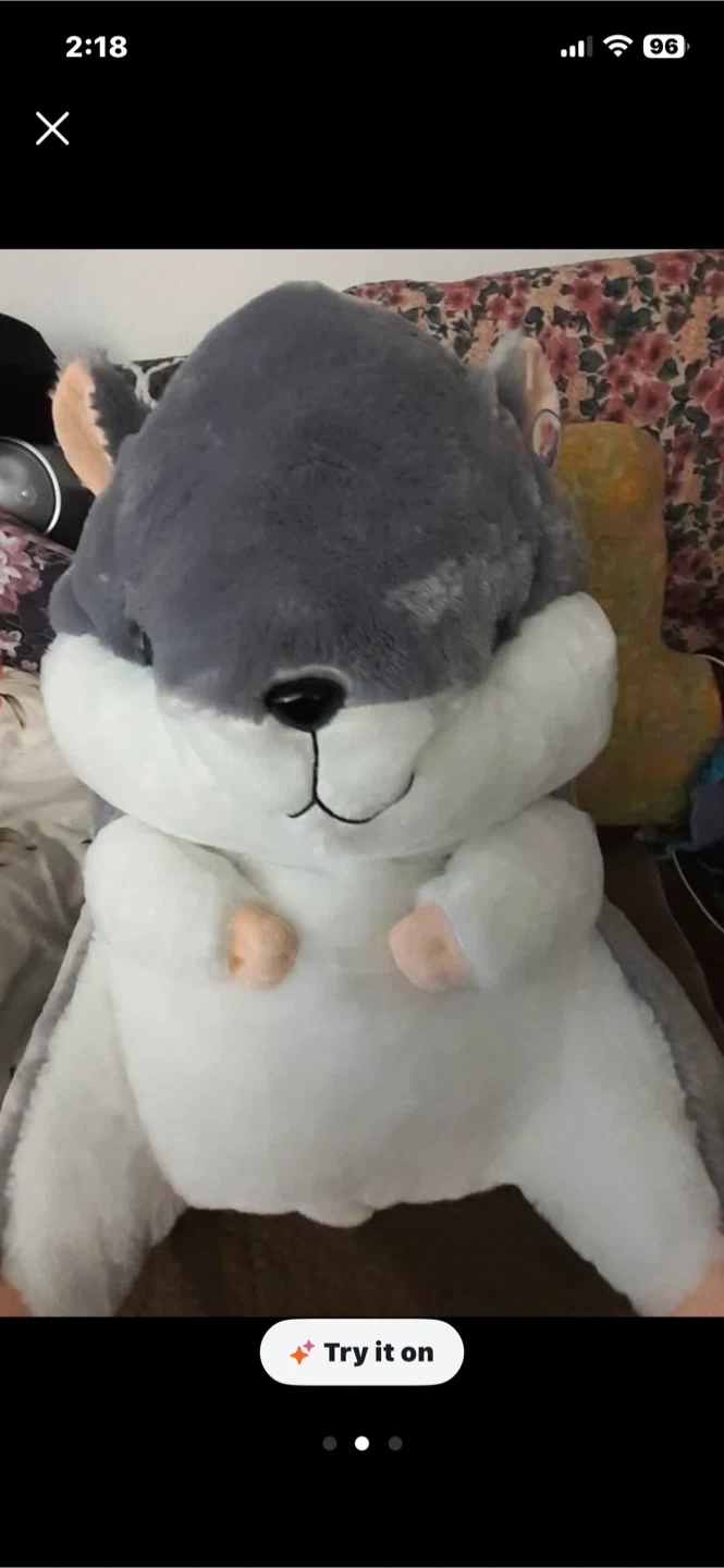This is a large, super soft plush toy shaped like a hamster. It's grey and white with pink paws and ears. It's perfect for cuddling or as a fun room decoration brand new still on tag $40 check my other posts please pick up only Markham and Lawrence avenue east.