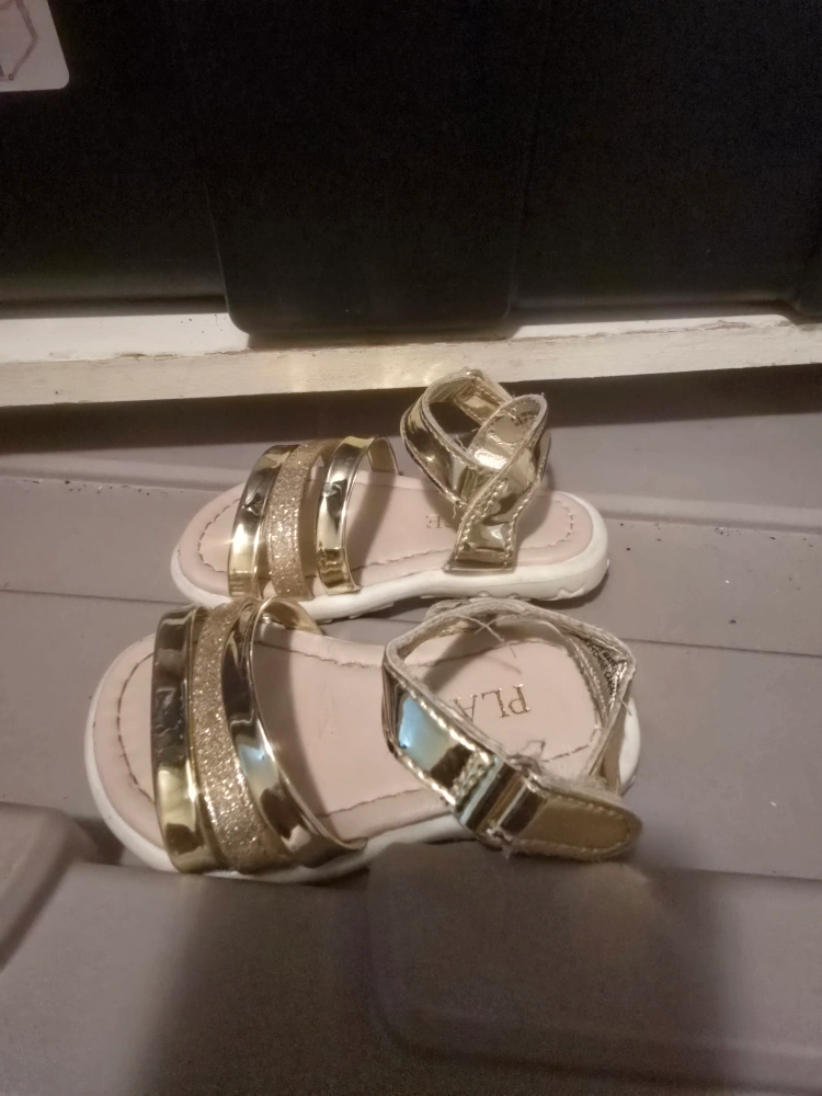 These sandals are in good condition and ready for a new home! They are gold and size 5