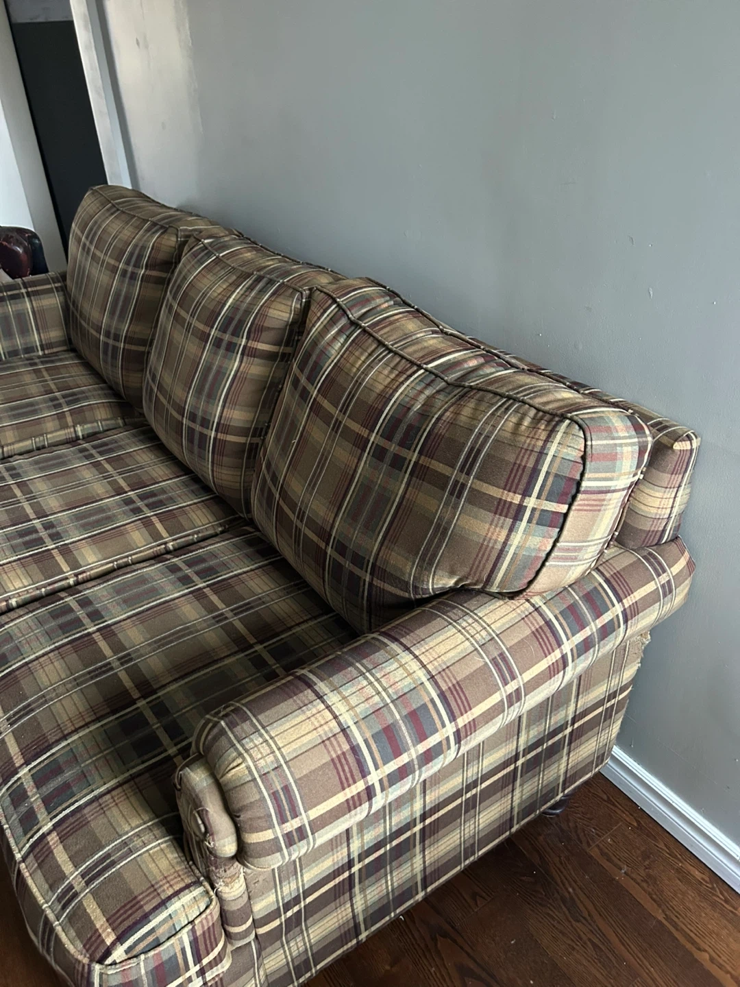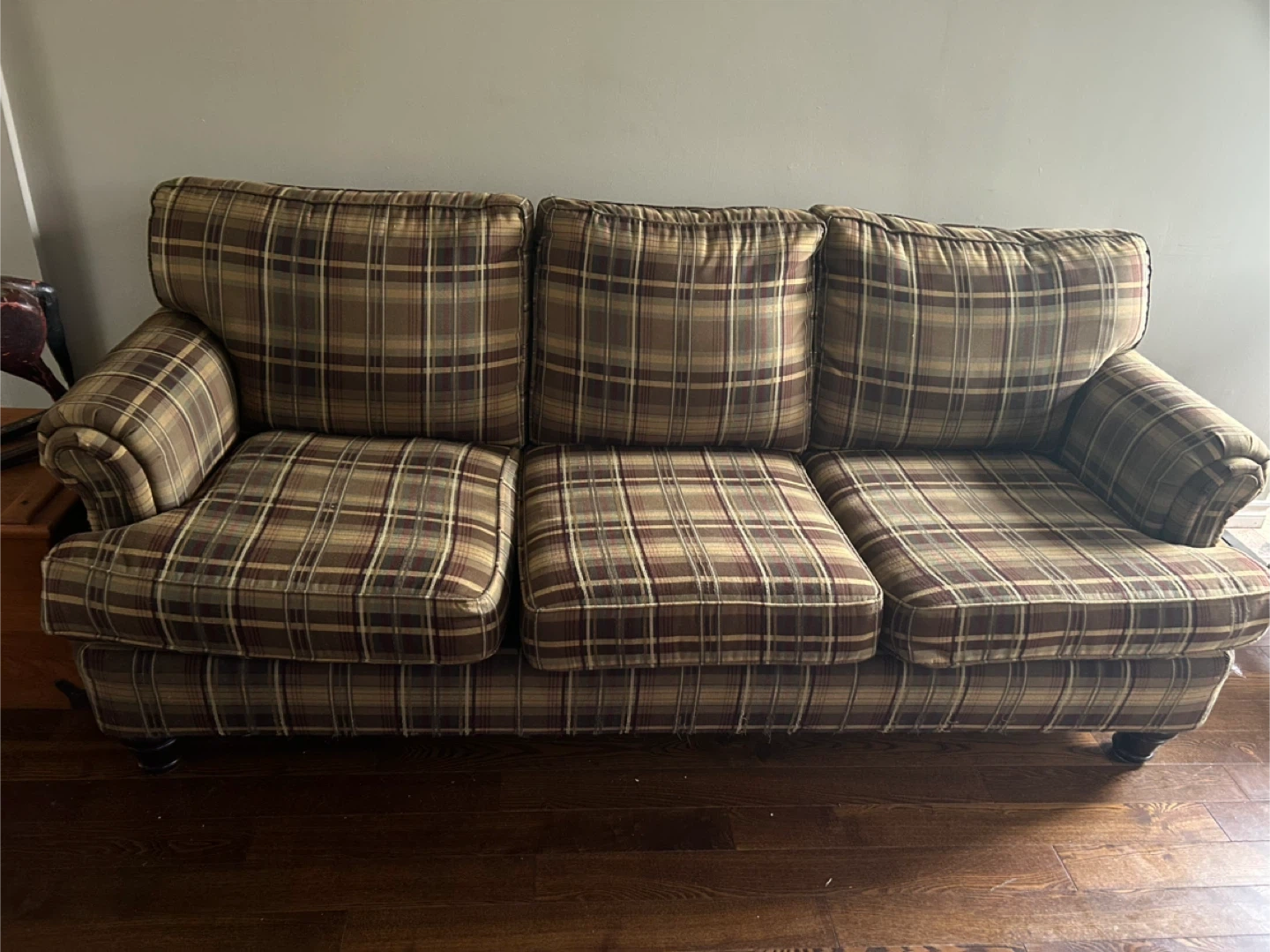 111Selling a comfy sofa with a plaid pattern! It comes from a house with cats slightly damaged. Cash and carry Keswick. Thank you for taking a look have several items listed looking for a new home, feel free to make an offer.