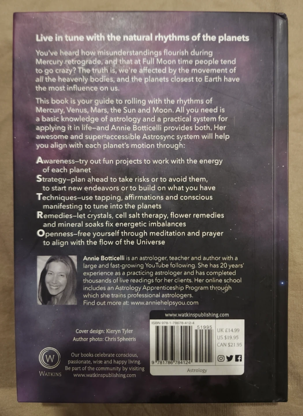 65Selling a copy of 'Planetology: How to Align with the Natural Rhythms of the Universe' by Annie Botticelli. This book is your guide to rolling with the rhythms of Mercury, Venus, Mars, the Sun and Moon. It provides a basic knowledge of astrology and a practical system for applying it in life.