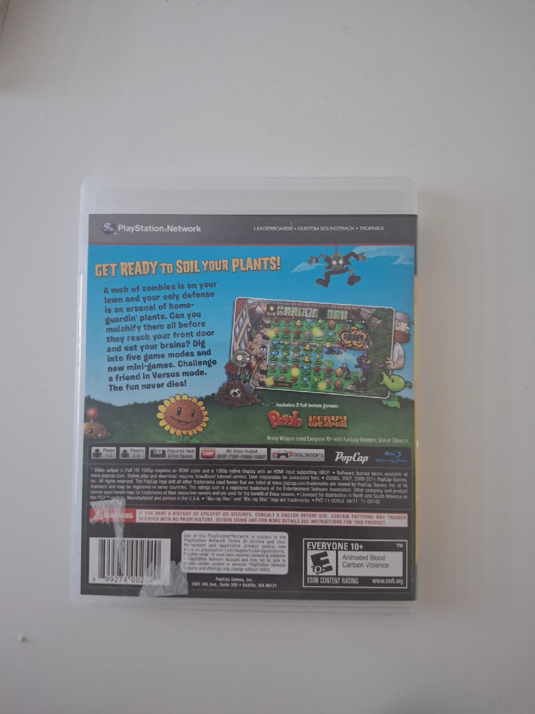 ps3 plants vs zombies comes with bonus games peggle and heavy weapon no manual